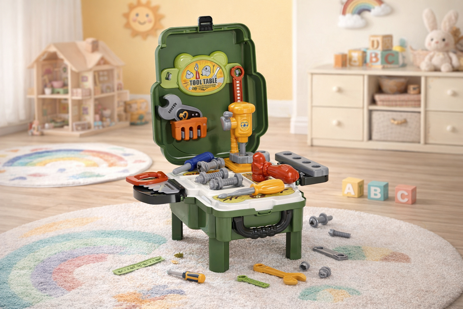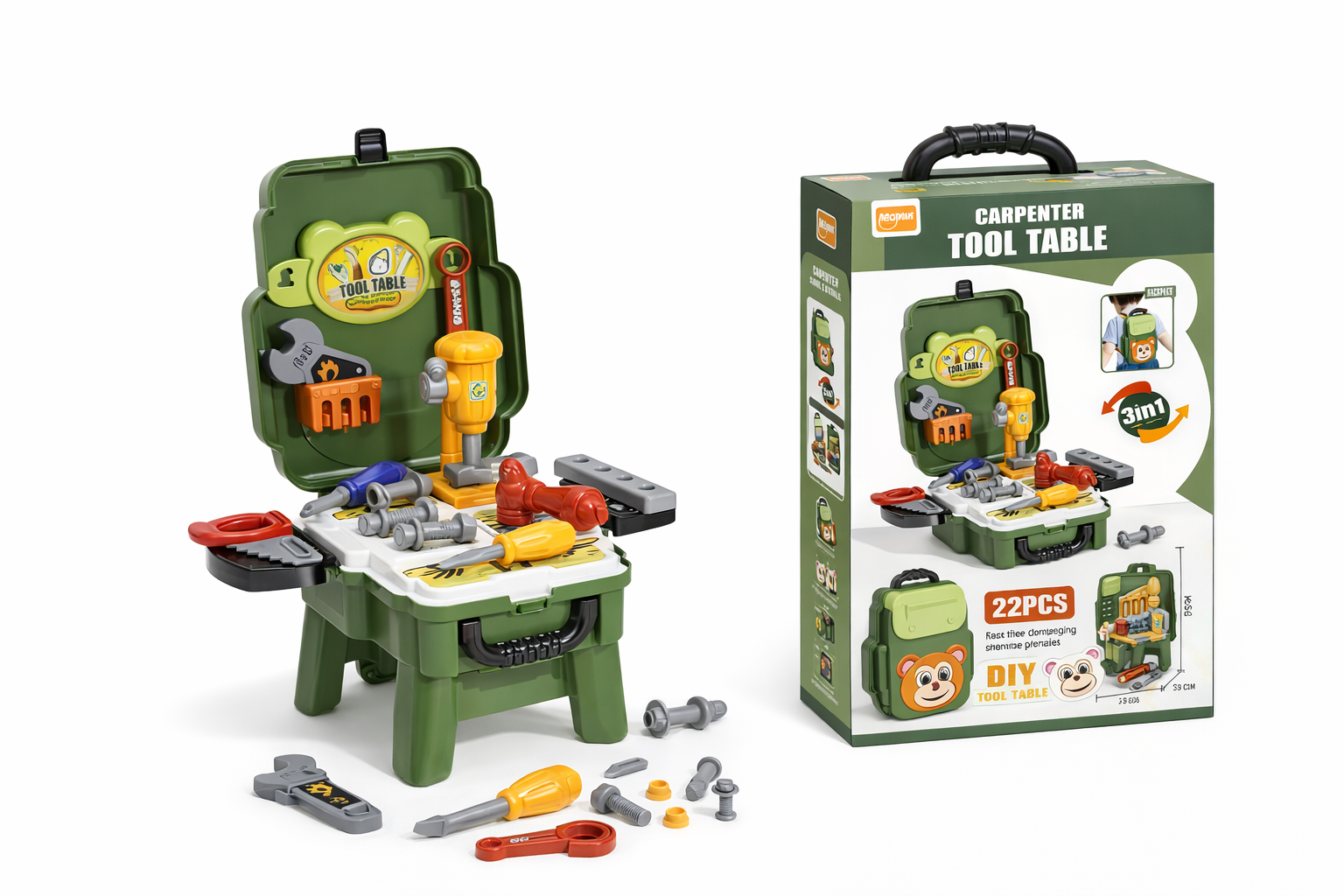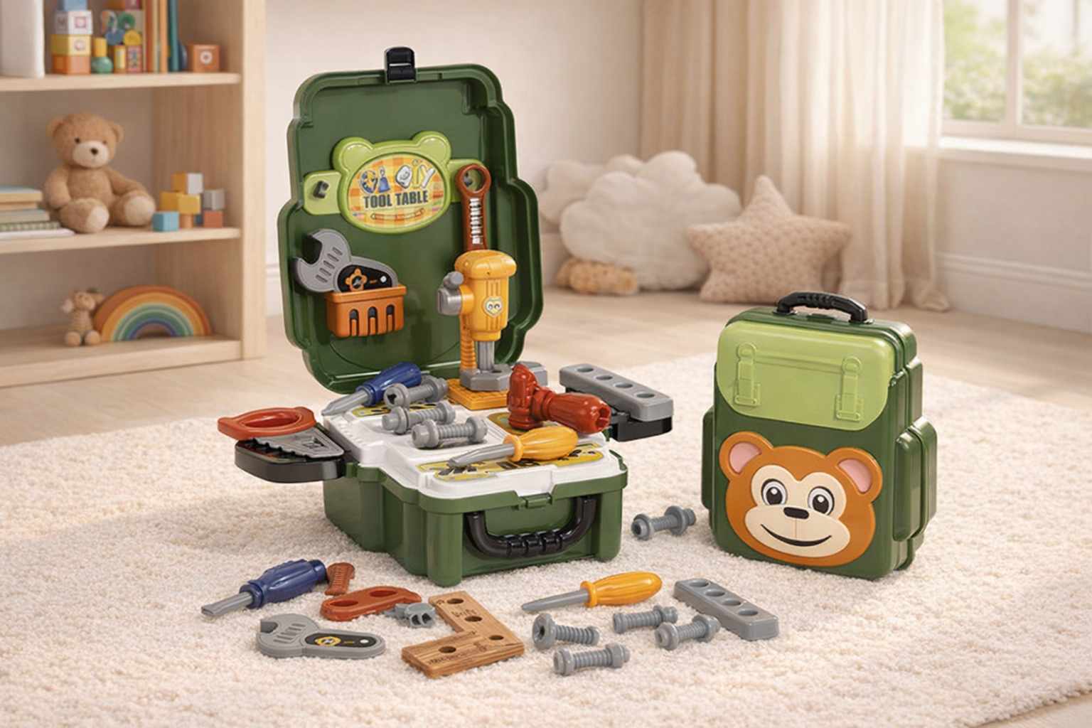 Dieses vielseitige 3-in-1 Werkzeugset für Kinder ist der perfekte Begleiter für kleine Handwerker. Das Set enthält 22 bunte, robuste Teile, die in einem praktischen Rucksack verstaut werden können. Der Rucksack lässt sich schnell in einen stabilen Arbeitstisch verwandeln, ideal für kreatives Spiel. Die Werkzeuge haben glatte Kanten und sind aus langlebigem Kunststoff gefertigt, was sie sicher für Kinder ab 3 Jahren macht. Diese Spielzeugset fördert die Feinmotorik, das kreative Denken und das Verständnis für handwerkliche Fähigkeiten – perfekt für zu Hause oder unterwegs. Ein ideales Geschenk, um die Neugier und das handwerkliche Geschick der Kleinen zu wecken.