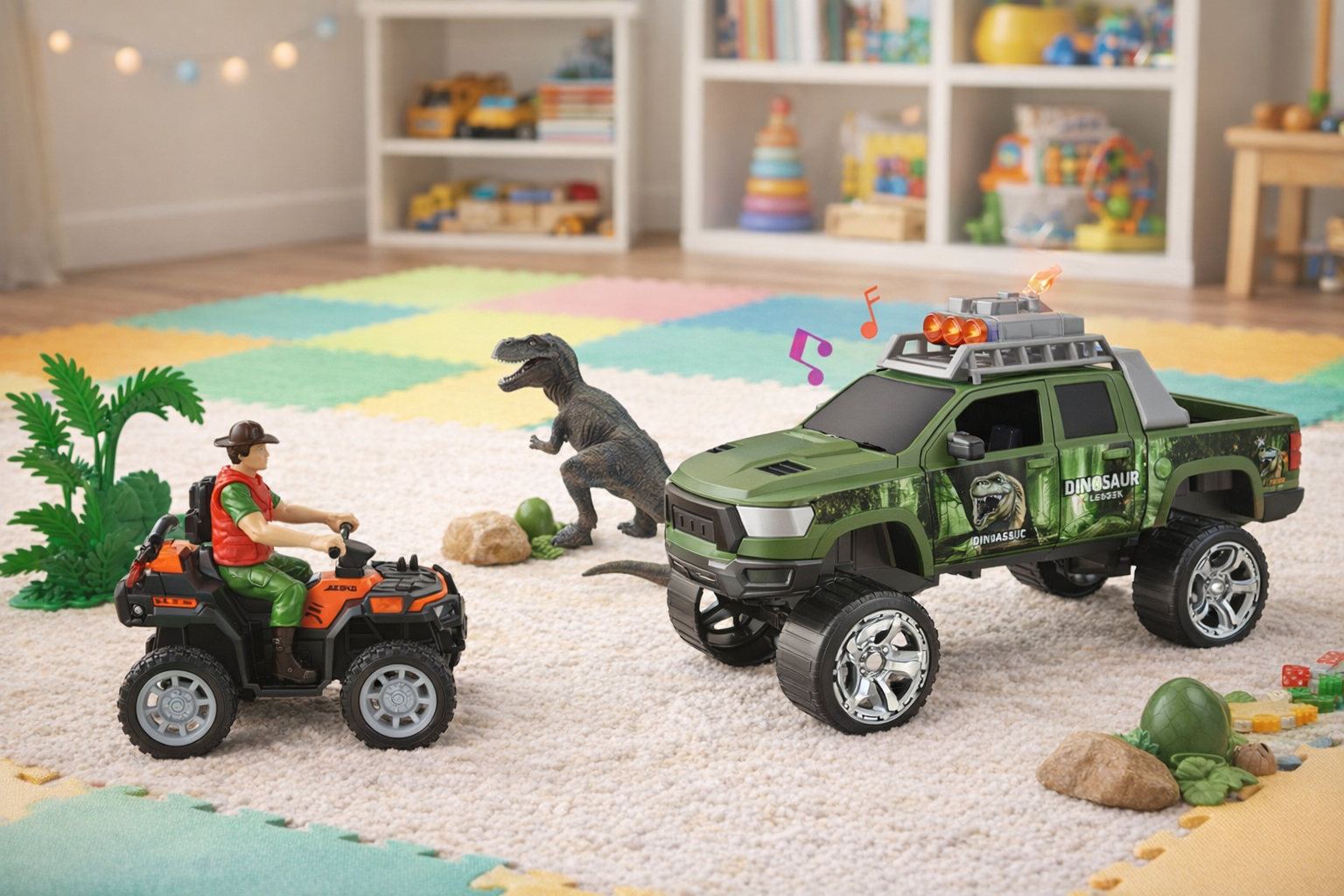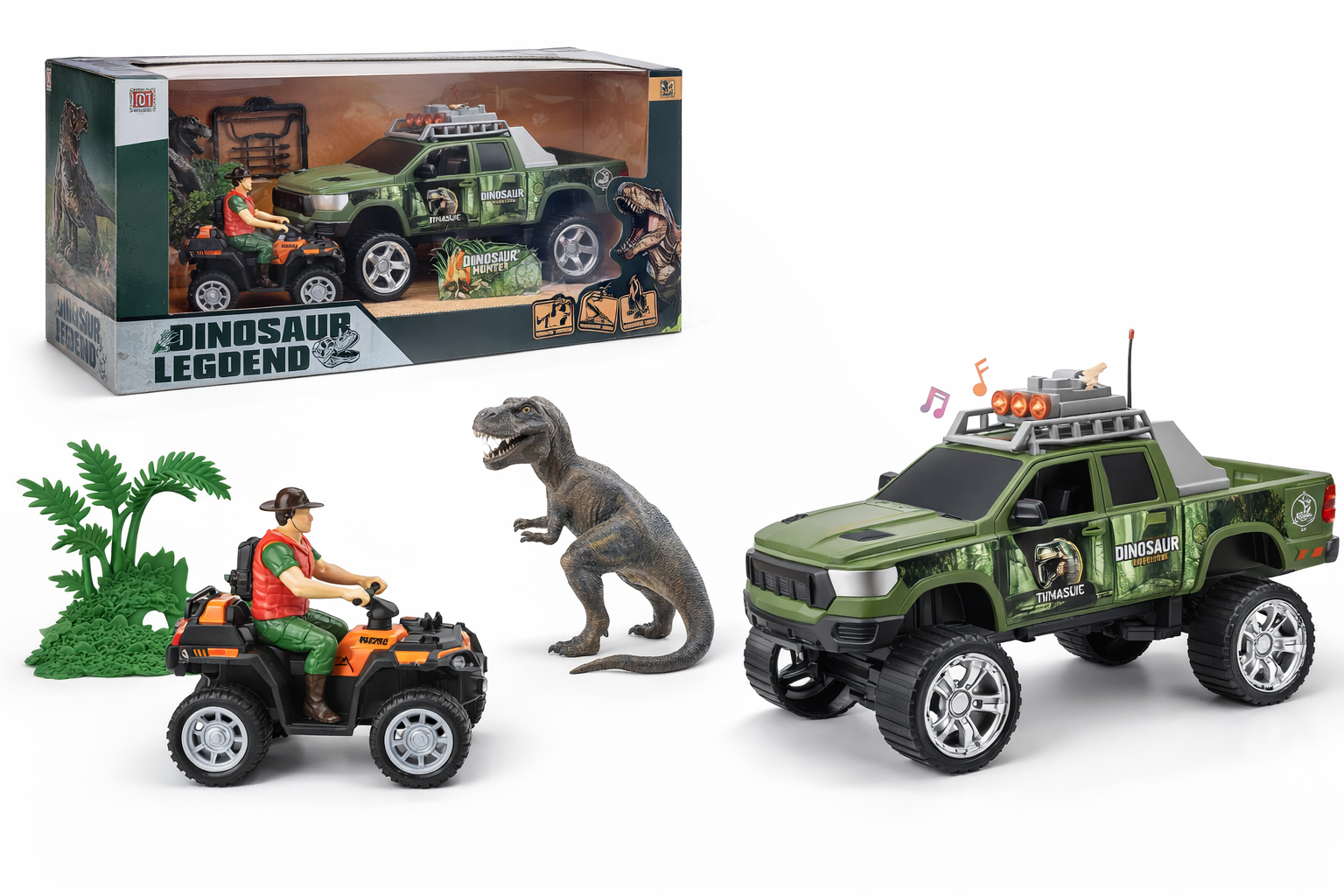 Entdecke die spannende Welt der Dinosaurier mit diesem abenteuerlichen Spielset! Das Set enthält einen robusten, grün getarnten Geländewagen, der mit realistischen Soundeffekten für aufregende Erlebnisse sorgt. Begleitet wird das Fahrzeug von einem Dinosaurier und einem Forscher auf einem Quad, was den Spielspaß ins Unermessliche steigert. Hergestellt aus langlebigem Kunststoff, eignet sich dieses Set perfekt für Kinder ab 3 Jahren, um ihre Fantasie zu entfalten und kreative Geschichten zu erfinden. Ideal für drinnen und draußen, bietet es endlose Stunden voller Entdeckungen und ist ein großartiges Geschenk für kleine Forscher und Dino-Fans.