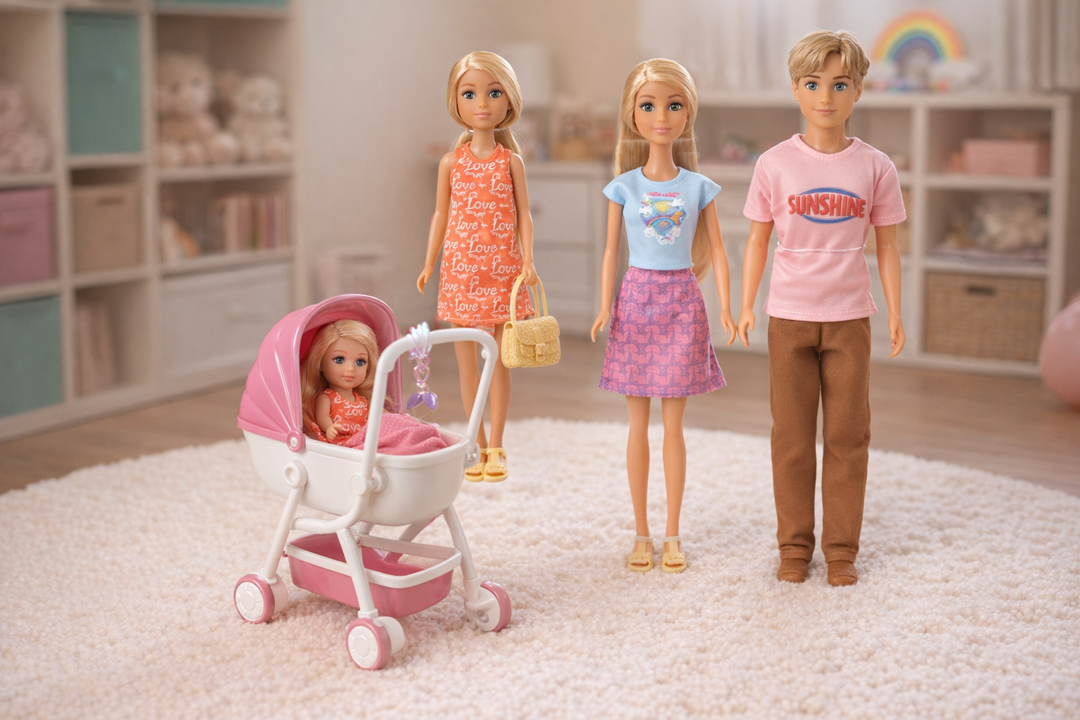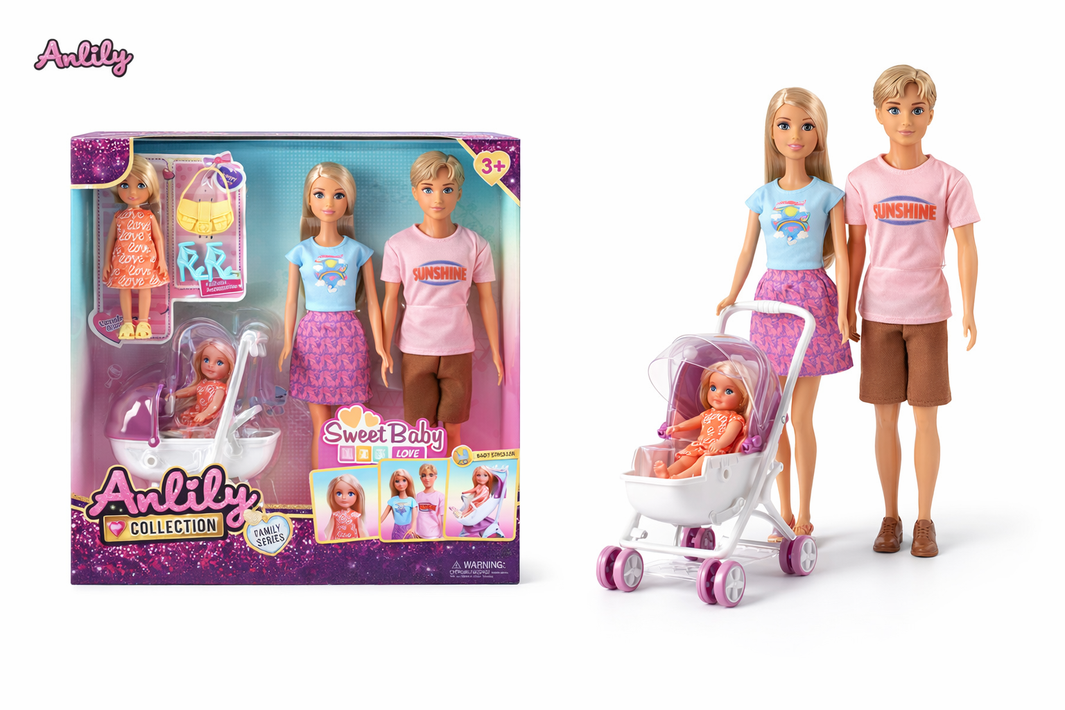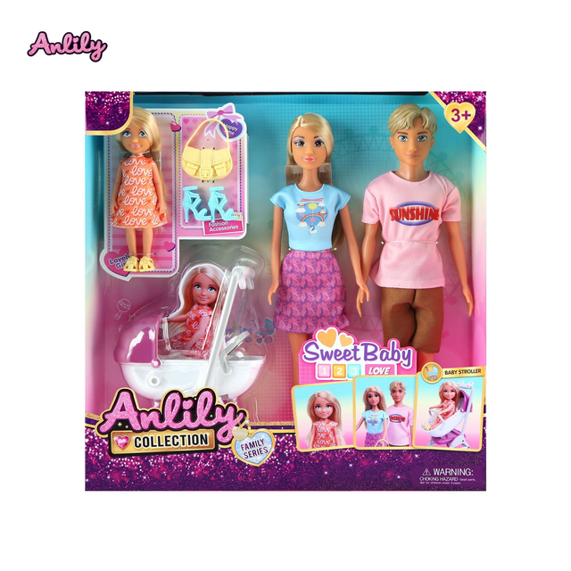 Die Anlily Puppenfamilie bringt endlose Spielmöglichkeiten für Kinder ab 3 Jahren. Diese charmante Familie besteht aus einer Puppenmutter, einem Puppenvater und einem süßen Baby, das in einem eleganten Kinderwagen sitzt. Die Puppen sind farbenfroh gekleidet und mit verschiedenen Accessoires ausgestattet, um fantasievolle Abenteuer zu erleben. Hergestellt aus hochwertigem, robustem Kunststoff, sind die Puppen perfekt für drinnen und draußen geeignet. Diese Spielzeugfamilie fördert Rollenspiele und soziale Interaktion, während sie die Kreativität und Feinmotorik der Kinder anregt. Ein ideales Geschenk, das stundenlangen Spielspaß garantiert.