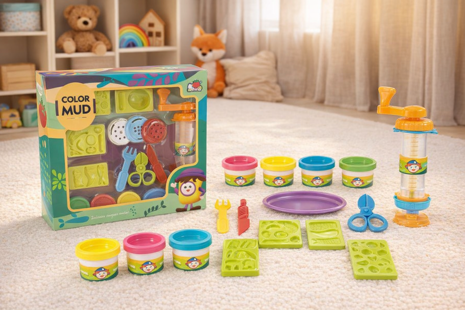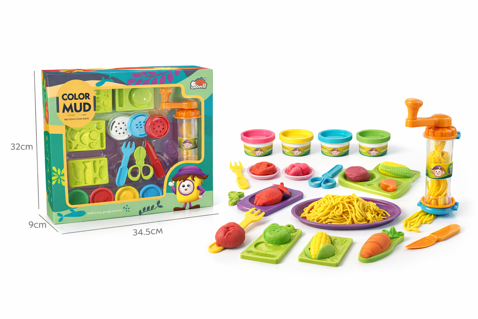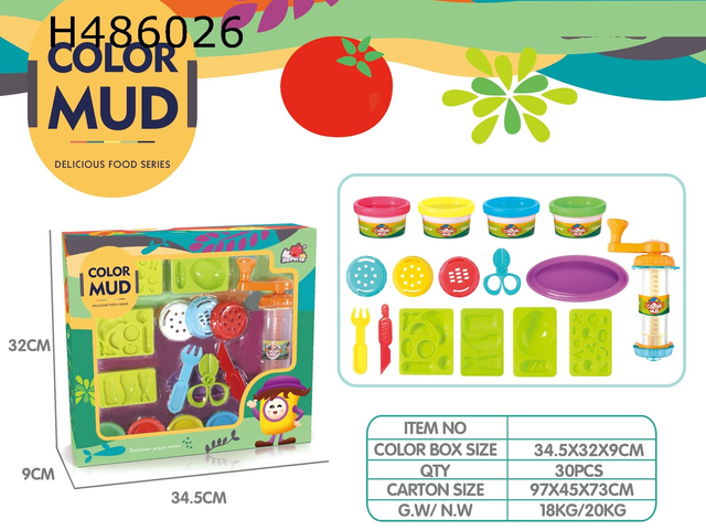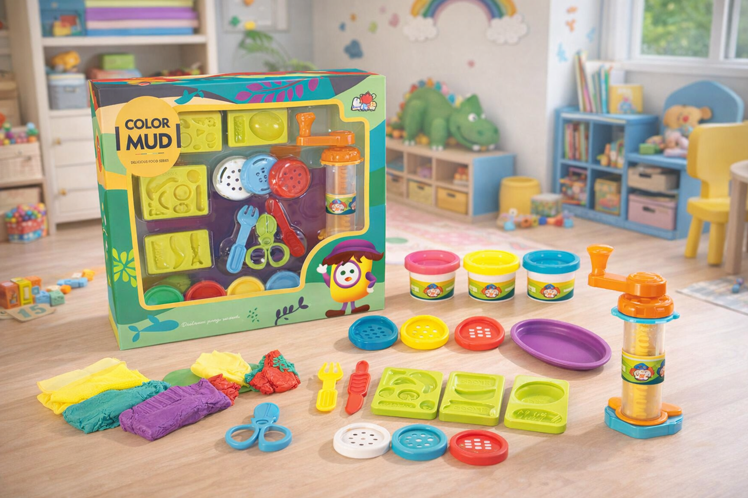Dieses farbenfrohe Knetset lädt Kinder ein, ihrer Kreativität freien Lauf zu lassen. Mit verschiedenen bunten Knetmassen und einer Vielzahl an Förmchen und Werkzeugen können kleine Köche fantasievolle Kreationen gestalten. Die enthaltenen Förmchen in Form von Lebensmitteln regen dazu an, spielerisch neue Formen zu entdecken. Das hochwertige Material ist weich und leicht zu formen, ideal für kleine Hände. Geeignet für Kinder ab 3 Jahren fördert dieses Set die Feinmotorik und Kreativität. Perfekt für drinnen und ein tolles Geschenk für kleine Entdecker.
