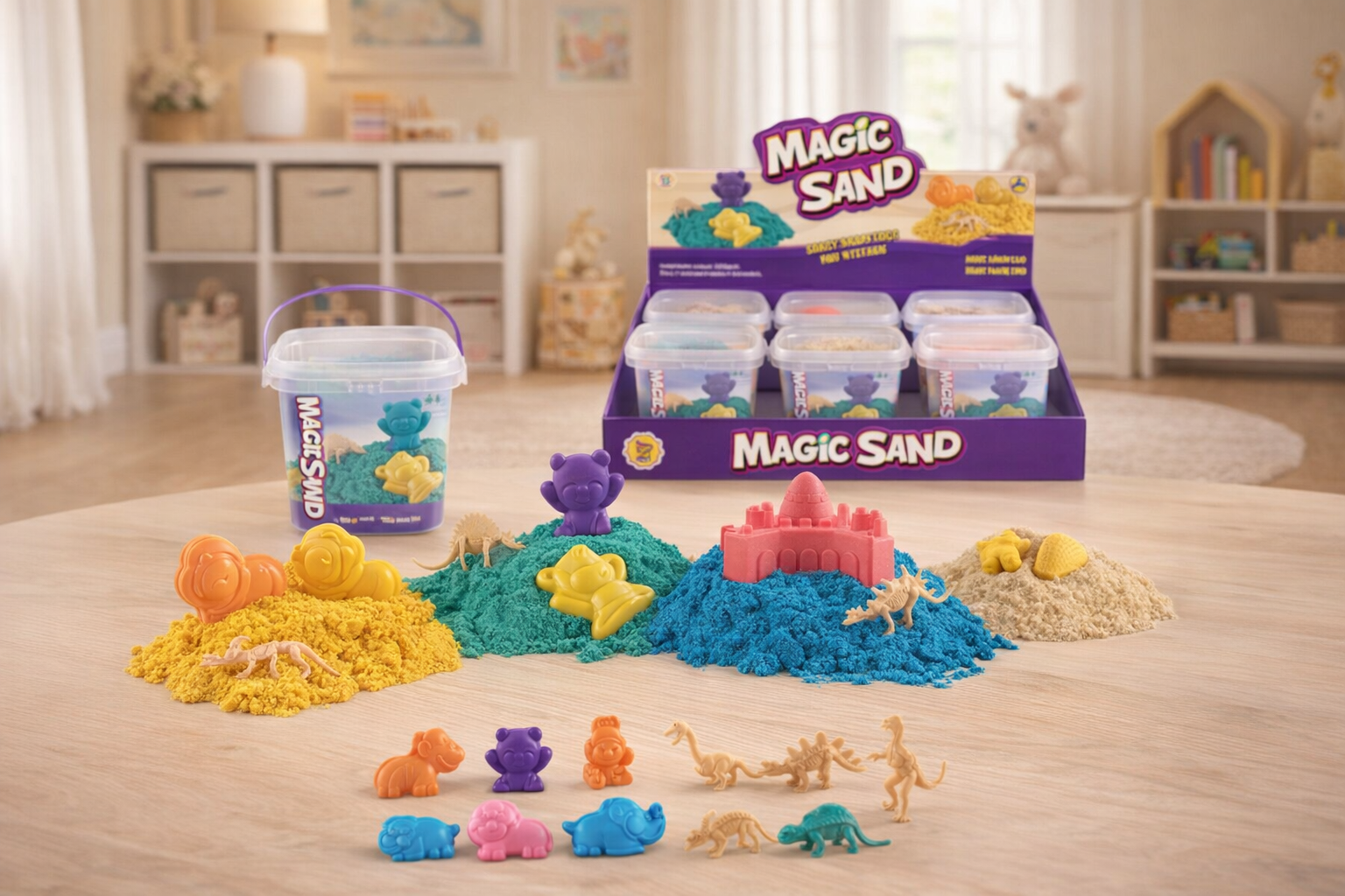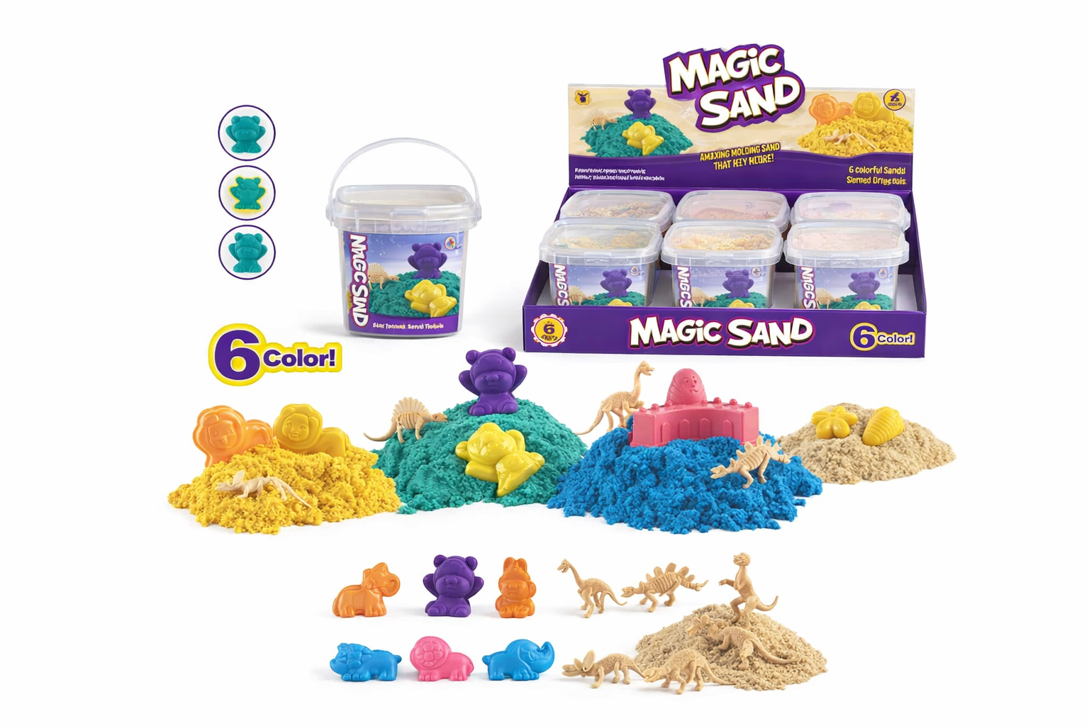 Erleben Sie die Magie des Space Sands mit dieser vielseitigen Sand Box. In sechs leuchtenden Farben bietet der kinetische Sand endlose kreative Möglichkeiten. Die Textur ist weich, formbar und hinterlässt keine Rückstände. Enthält verschiedene Formen und Werkzeuge, um die Fantasie der Kinder zu beflügeln. Ideal für drinnen und draußen, fördert es die Feinmotorik und Kreativität. Sicher für Kinder ab 3 Jahren, ungiftig und mit glatten Kanten. Perfekt für Geburtstagsgeschenke oder als pädagogisches Spielzeug im Klassenzimmer.