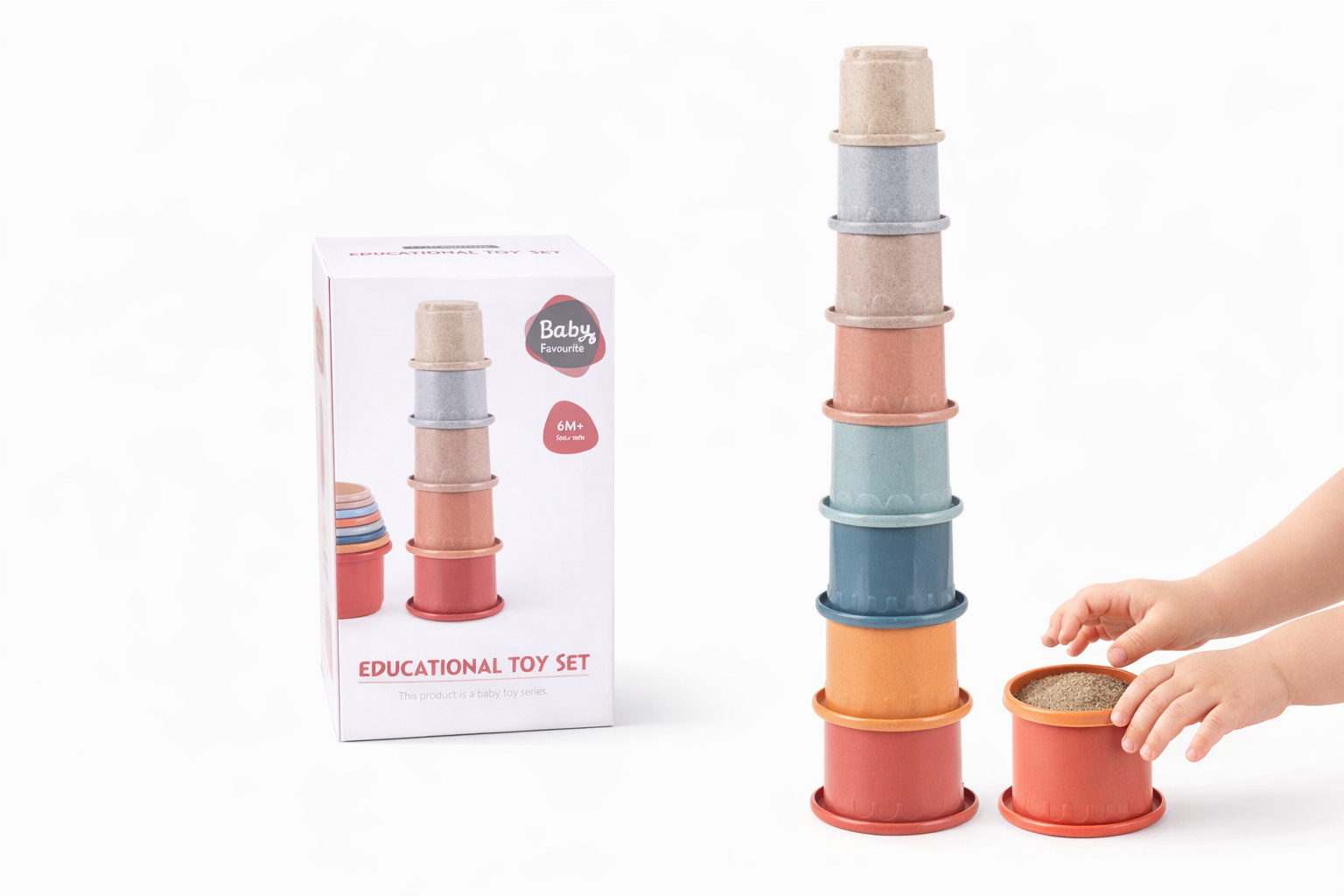 Bunte Stapelbecher aus Naturmaterial für Kleinkinder