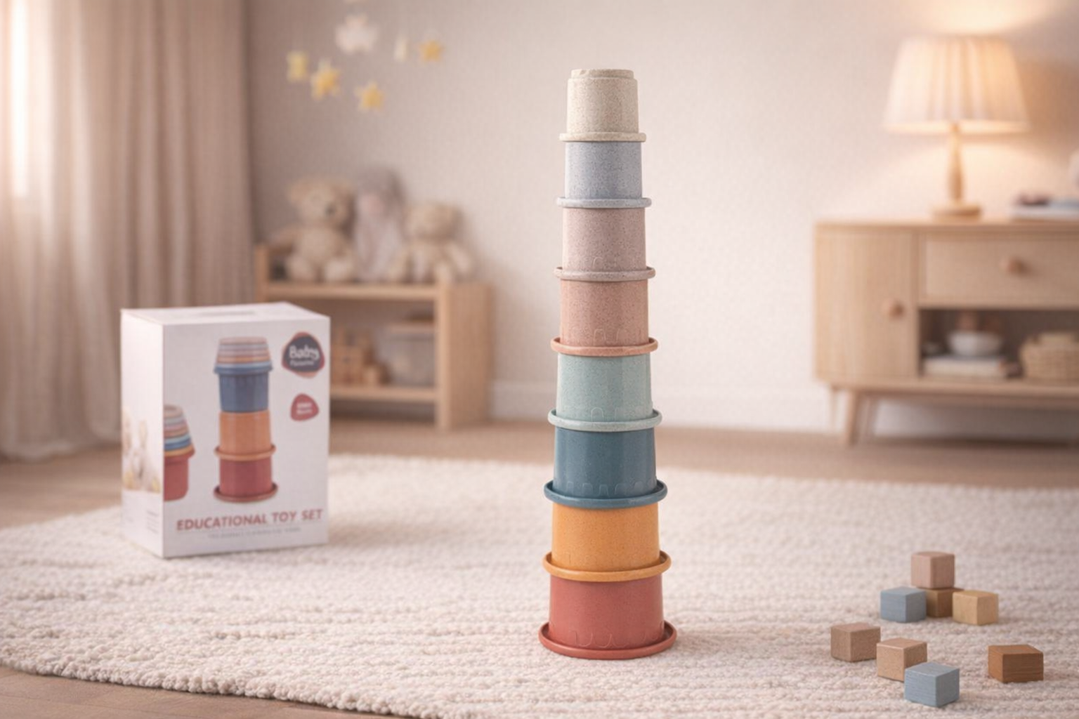 Dieses farbenfrohe Stapelbecher-Set besteht aus acht Bechern in sanften Naturtönen und ist ideal für die Entwicklung motorischer Fähigkeiten bei Kleinkindern.... Lesen Sie mehr