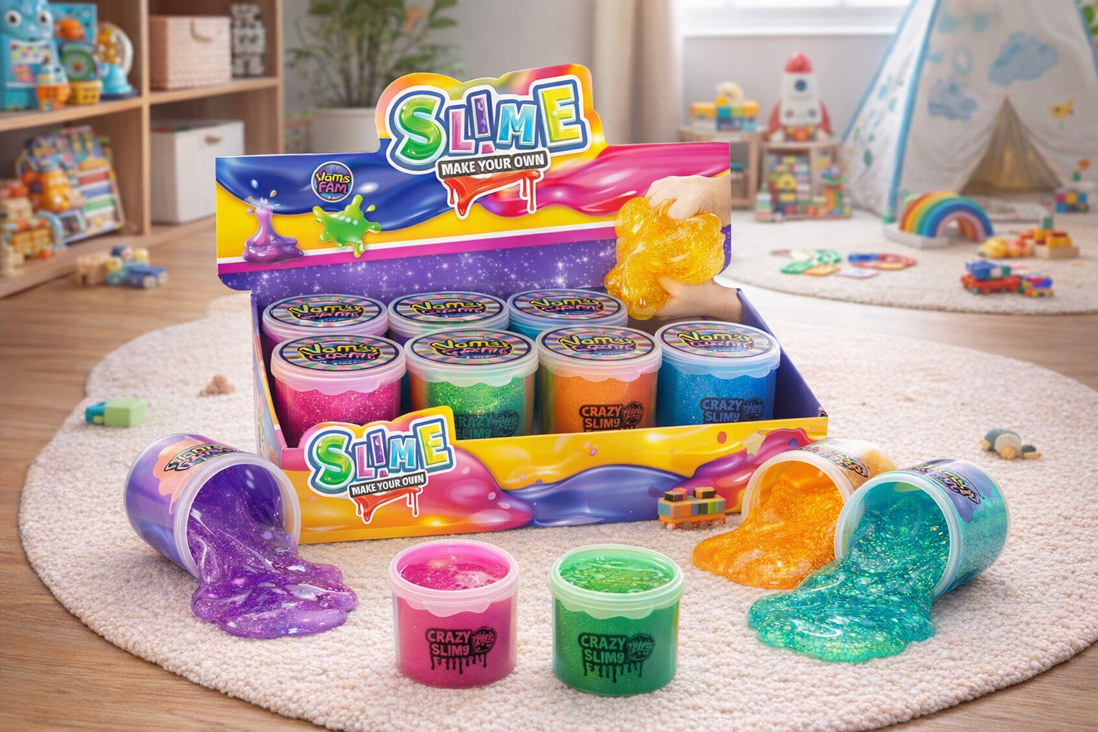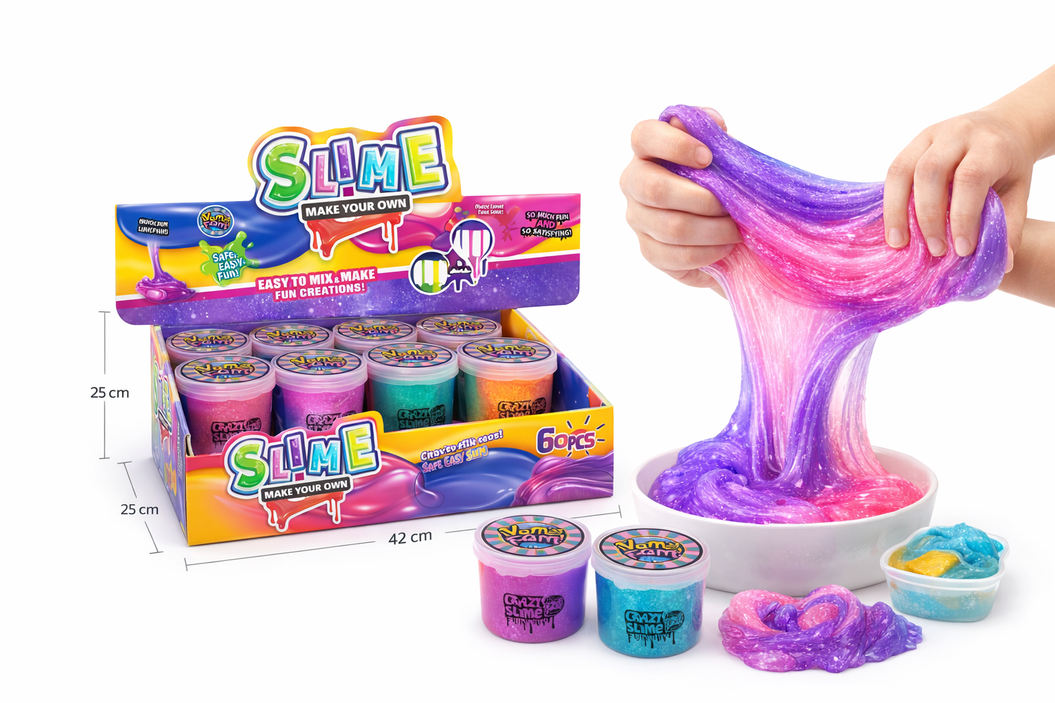 Entfesseln Sie die Kreativität Ihrer Kinder mit diesem bunten DIY-Slime-Set! Die leuchtenden Farben des Slimes ziehen Kinder in ihren Bann und regen die Fantasie an. Hergestellt aus einem sicheren, ungiftigen Material, das weich und dehnbar ist, bietet es endlose Möglichkeiten für kreatives Spielen. Kinder können eigene Kreationen mischen und formen, was die Feinmotorik und Kreativität fördert. Perfekt für drinnen und draußen, sorgt dieses Slime-Set für stundenlangen Spielspaß. Ein aufregendes Geschenk für Kinder ab 6 Jahren, das nicht nur Spaß macht, sondern auch beruhigend wirkt!