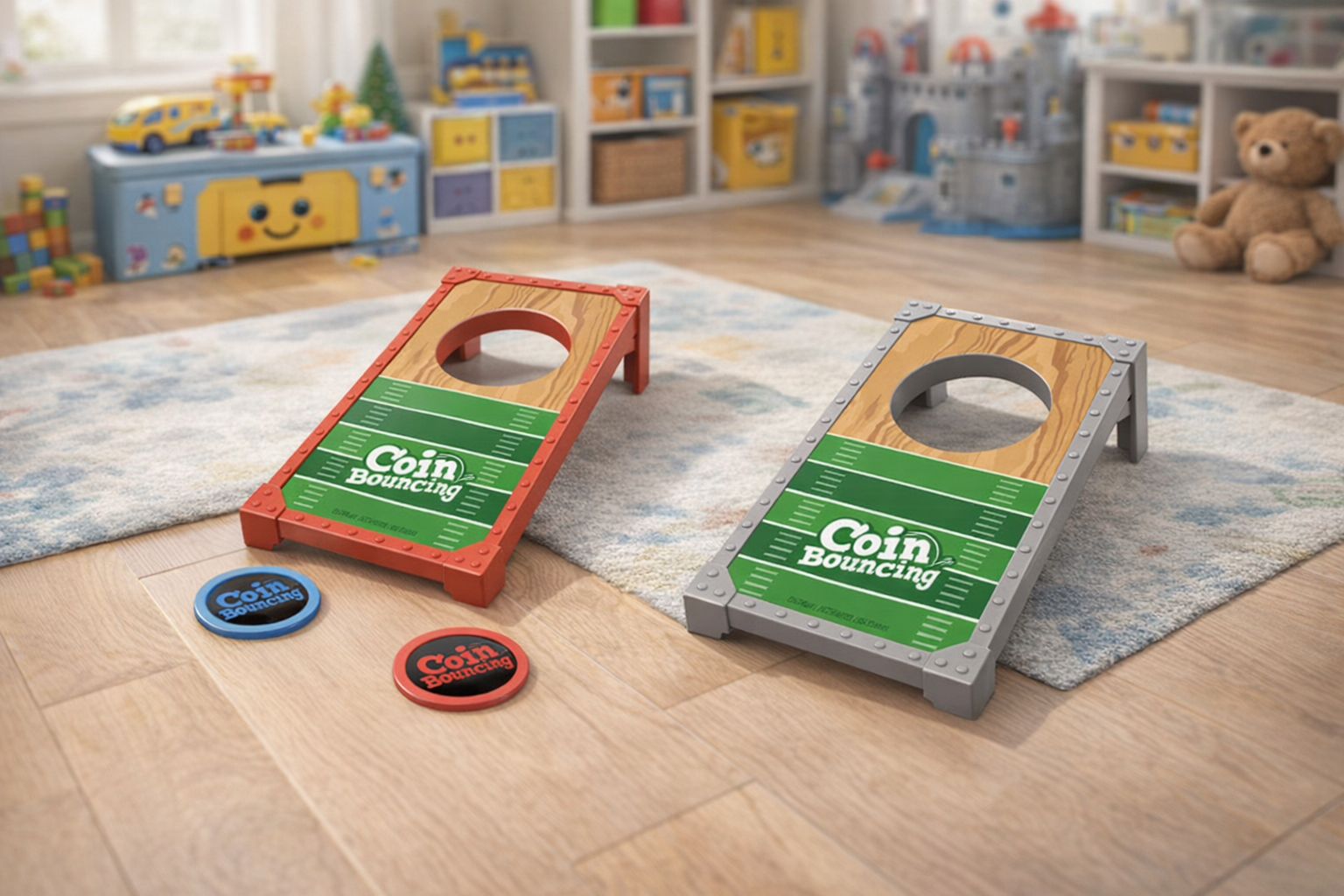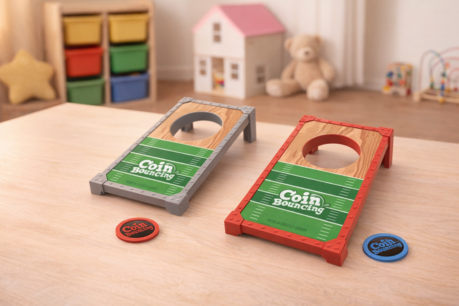 Entfesseln Sie den Spielspaß mit unserem bunten Münzwurfspiel, ideal für Kinder ab 3 Jahren. Das Spiel besteht aus zwei robusten Plattformen in Rot und Grau mit einem ansprechenden Holzdesign, das zum Zielen und Werfen anregt. Die mitgelieferten Münzen sind farbenfroh gestaltet und bieten stundenlangen Spielspaß. Dieses Spiel fördert die Hand-Augen-Koordination und ist perfekt für drinnen geeignet. Ob im Wohnzimmer oder auf Reisen, das kompakte Design macht es einfach transportierbar und ideal für spontane Spiele. Sicherheit wird großgeschrieben: Alle Teile sind glatt und kindgerecht verarbeitet. Ein fantastisches Geschenk, das sowohl Eltern als auch Kindern Freude bereitet.
