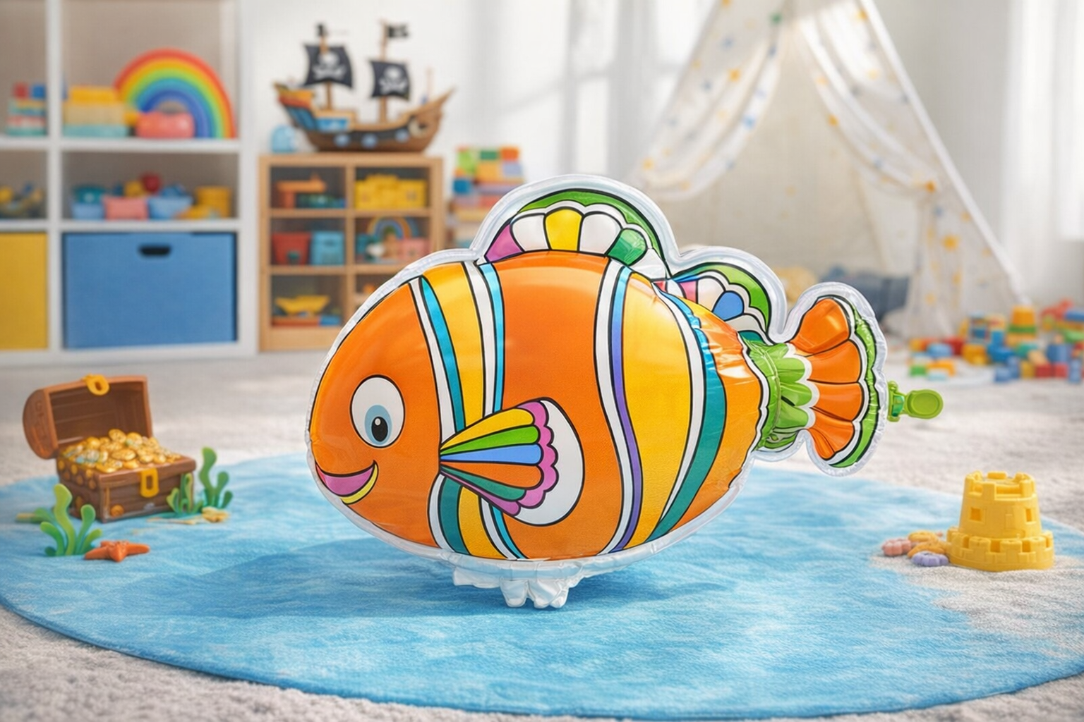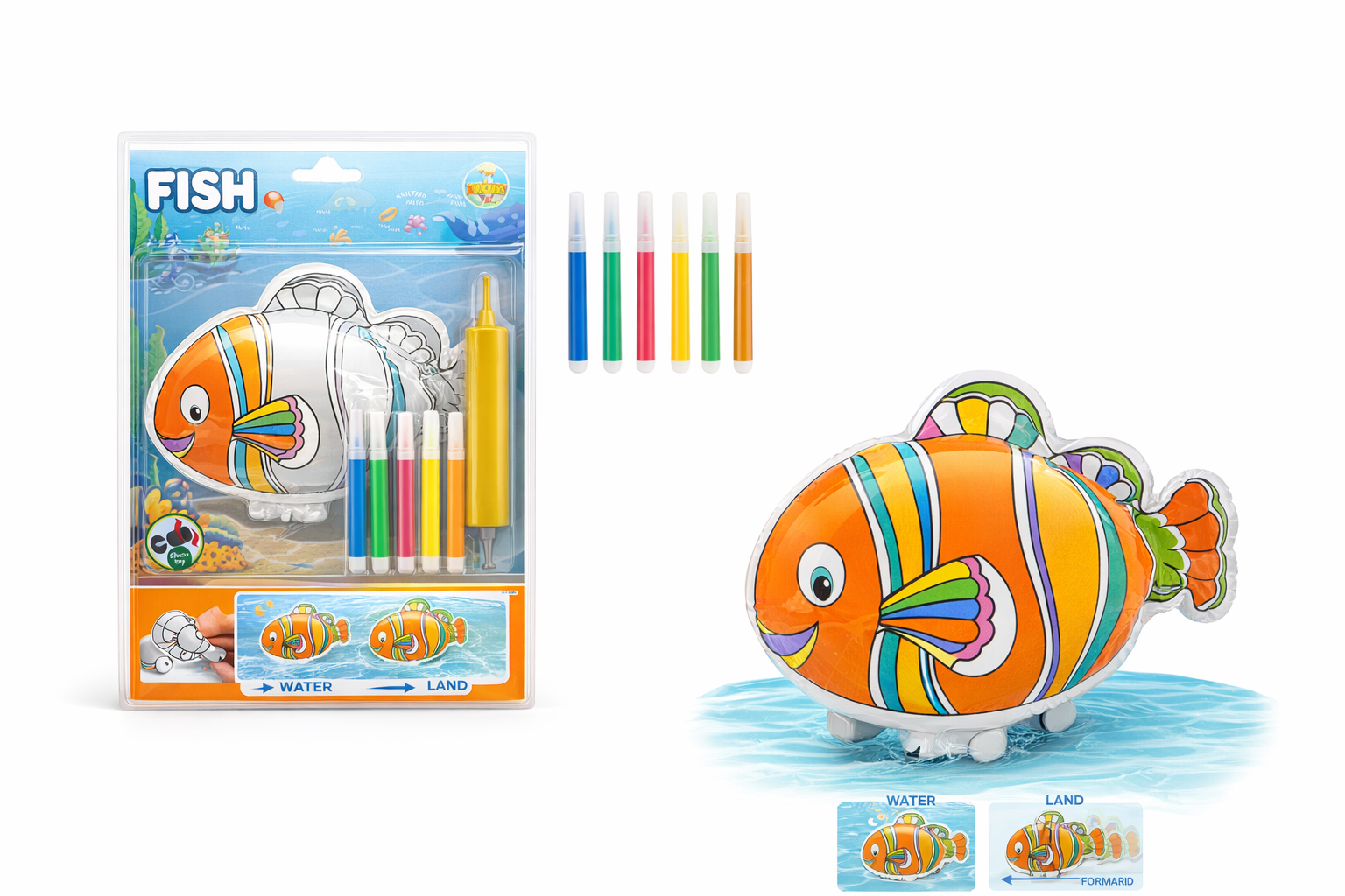 Entdecken Sie kreativen Spielspaß mit diesem DIY aufblasbaren Clownfisch! Dieser 22 cm große Fisch kann sowohl im Wasser als auch an Land genutzt werden. Hergestellt aus langlebigem Kunststoff, bietet er eine ideale Leinwand für Ihre Kinder, um mit den enthaltenen fünf Farbstiften einzigartige Designs zu kreieren. Die glatte Oberfläche und die abgerundeten Kanten machen ihn sicher und kinderfreundlich. Perfekt für Kinder ab 3 Jahren, fördert dieses Spielzeug die Feinmotorik und die Kreativität. Nutzen Sie den mitgelieferten Luftzylinder, um den Fisch kinderleicht aufzublasen. Ideal für drinnen oder draußen und ein wunderbares Geschenk für kleine Entdecker!