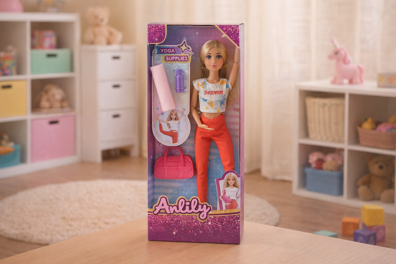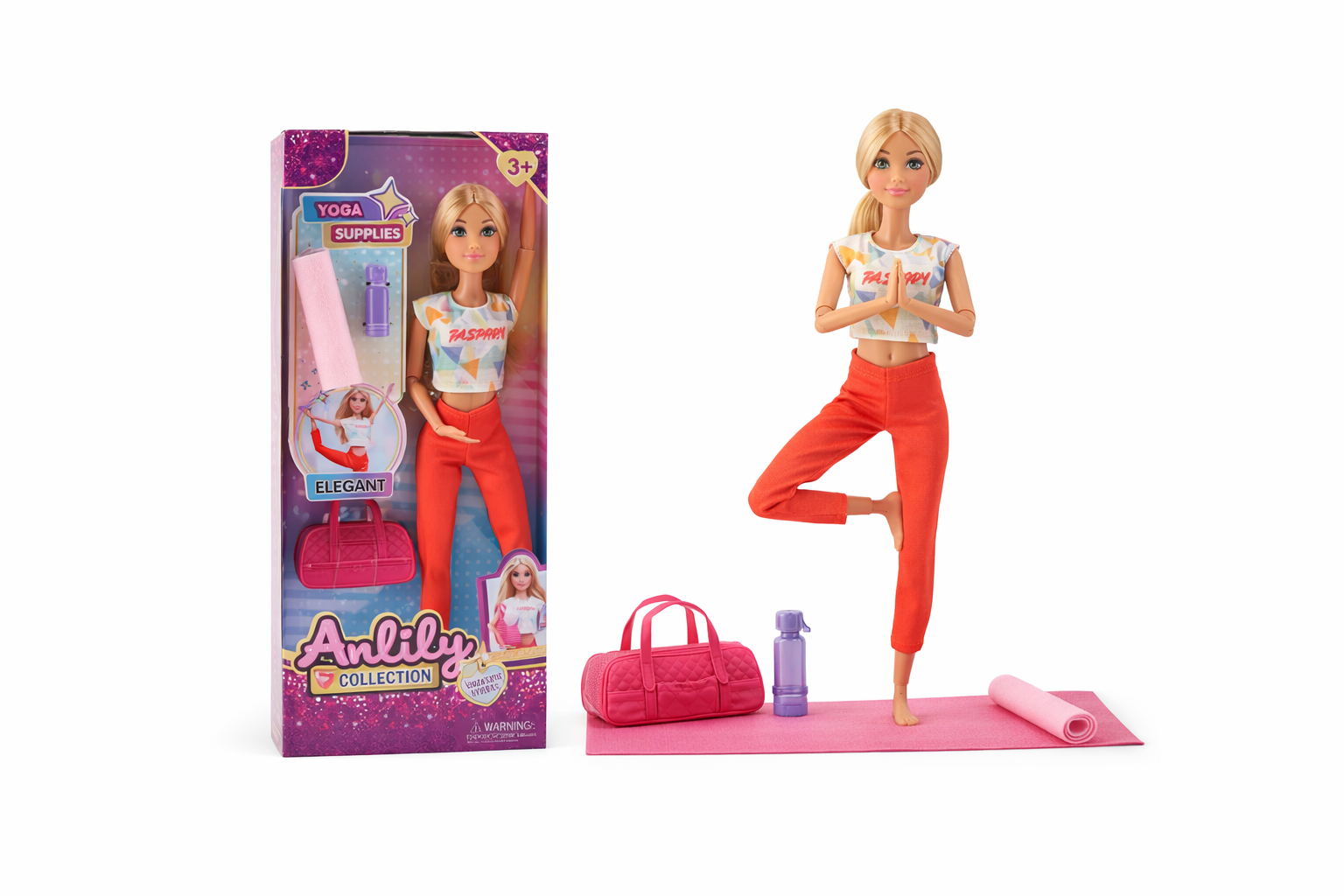 Elegante Modepuppe mit Yoga-Zubehör für Kinder ab 3 Jahren