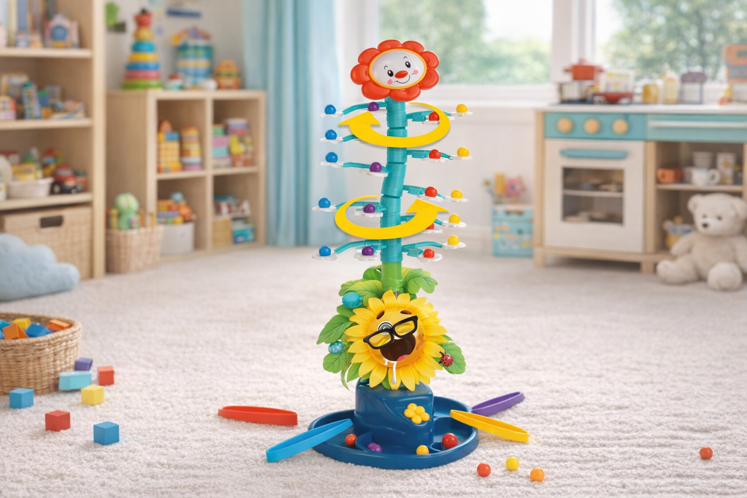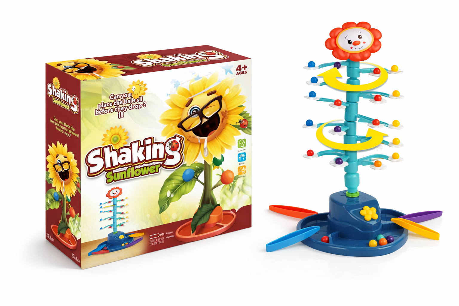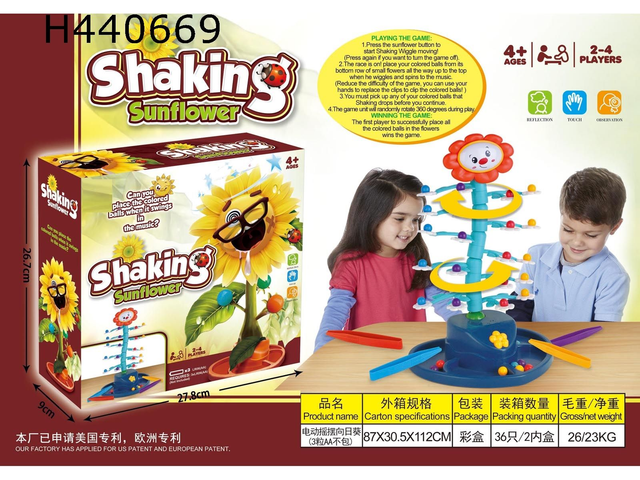 Das elektrische Wackel-Sonnenblumen-Spiel ist ein farbenfrohes und aufregendes Geschicklichkeitsspiel für Kinder ab 4 Jahren. Mit seinem lustigen Design aus stabilen, bunten Kunststoffkomponenten und einer fröhlichen Sonnenblume an der Spitze zieht es Kinder sofort in seinen Bann. Die Herausforderung besteht darin, die Kugeln reihum auf die beweglichen Blätter zu legen, während die Sonnenblume wackelt und sich dreht. Dieses Spiel fördert die Feinmotorik, das strategische Denken und die Hand-Auge-Koordination. Die robuste Konstruktion und die abgerundeten Kanten sorgen für sicheres Spielen, während das interaktive Design stundenlangen Spielspaß bietet. Ideal für drinnen, eignet es sich perfekt als Geschenk und bietet Unterhaltung für bis zu vier Spieler gleichzeitig.