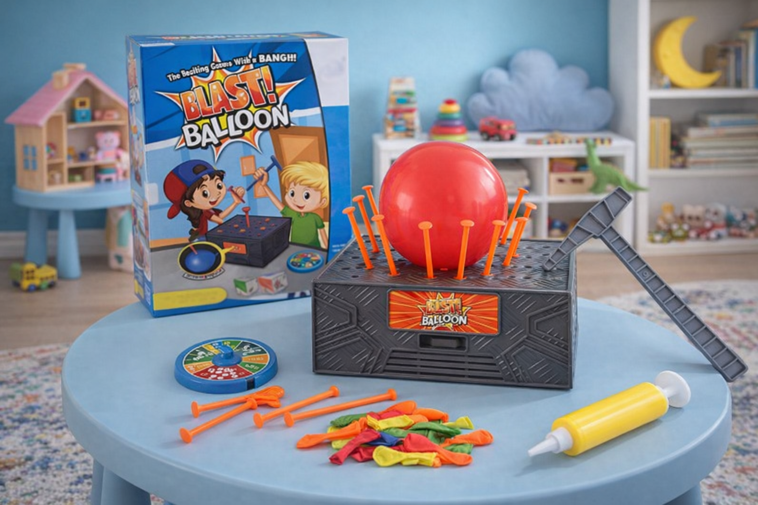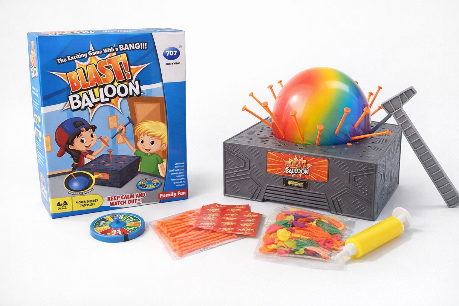 Erleben Sie mit dem explosiven Ballonspiel aufregende Spielmomente! Dieses spannende Geschicklichkeitsspiel besteht aus einer robusten Box, bunten Ballons und einem Hammer. Kinder können die Ballons aufpumpen und sicher an der Box befestigen, bevor sie versuchen, die Nägel mit dem Hammer einzuschlagen. Ein lustiger Knall erwartet jeden erfolgreichen Schlag! Das Spiel fördert die Hand-Augen-Koordination und bietet stundenlangen Spaß für die ganze Familie. Ideal für Kinder ab 6 Jahren und perfekt für den Einsatz in Gruppen oder als Geburtstagsgeschenk.