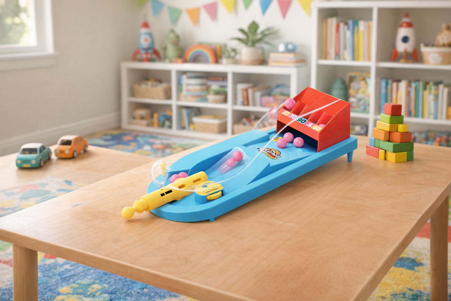 Dieses bunte Mini-Pinball-Spiel bietet endlosen Spaß für Kinder ab 4 Jahren. Mit leuchtenden Farben in Rot, Blau und Gelb zieht es sofort die Aufmerksamkeit auf sich. Hergestellt aus robustem Kunststoff, ist es langlebig und sicher für stundenlangen Spielspaß. Die beweglichen Teile und interaktiven Elemente fördern die Hand-Augen-Koordination und Geschicklichkeit. Kinder können alleine oder mit einem Freund spielen, was es zu einer großartigen pädagogischen Aktivität macht. Ideal für den Einsatz drinnen, auf Reisen oder als spannendes Geschenk.