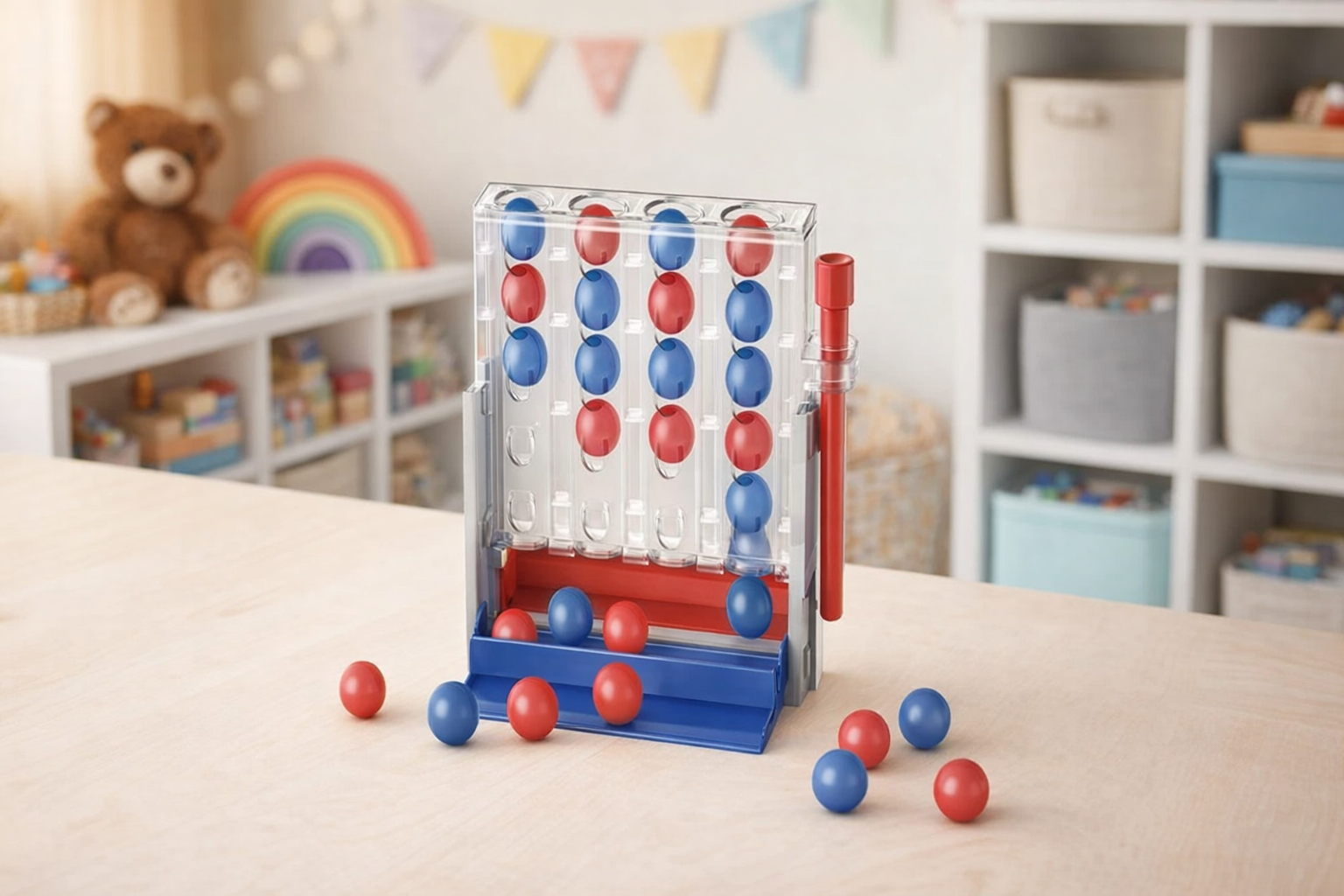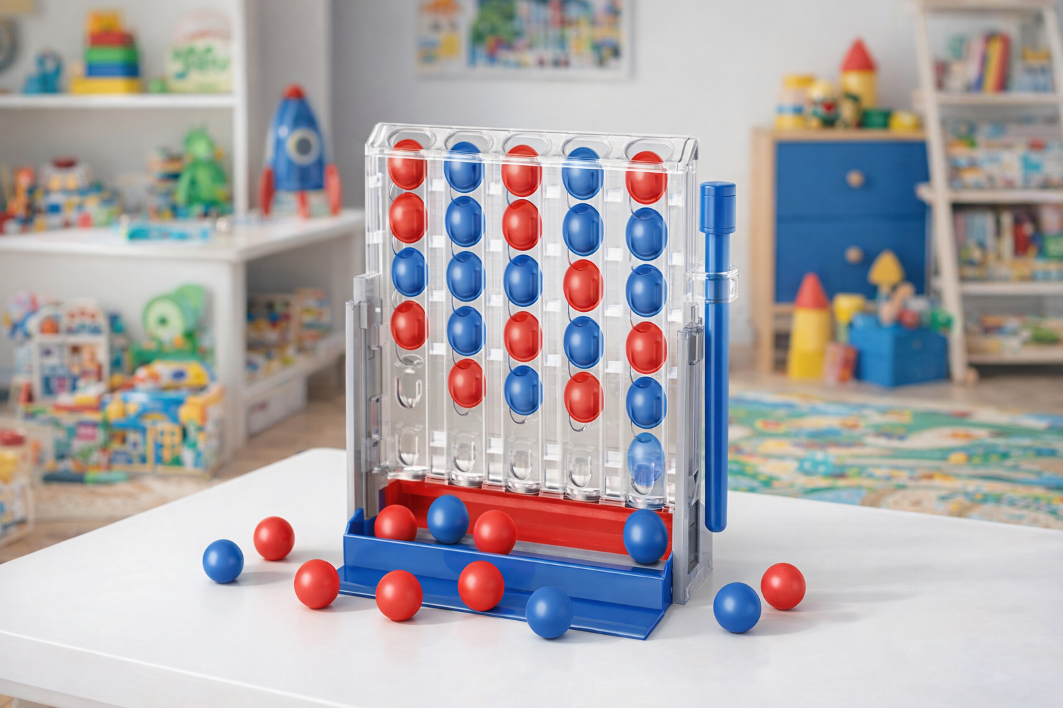 Entdecken Sie das spannende Vierer-Reihenspiel, das Strategie und Spaß vereint. Das Spiel besteht aus einer transparenten Platte mit roten und blauen Kugeln, die abwechselnd platziert werden, um vier in einer Reihe zu erzielen. Kinder ab 3 Jahren können ihre logischen Fähigkeiten und Problemlösungsfähigkeiten trainieren, während sie spielerisch strategisches Denken entwickeln. Hergestellt aus robustem, kinderfreundlichem Material, garantiert es langlebigen Spielspaß und ist ideal für Reisen oder gemütliche Spielnachmittage zu Hause. Ein fantastisches Geschenk für kleine Strategen!