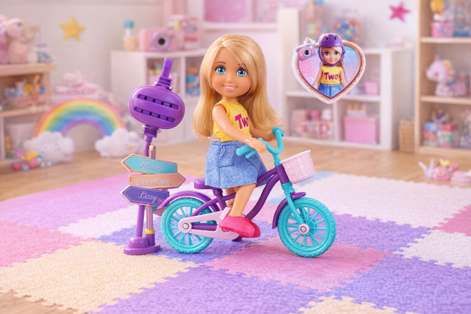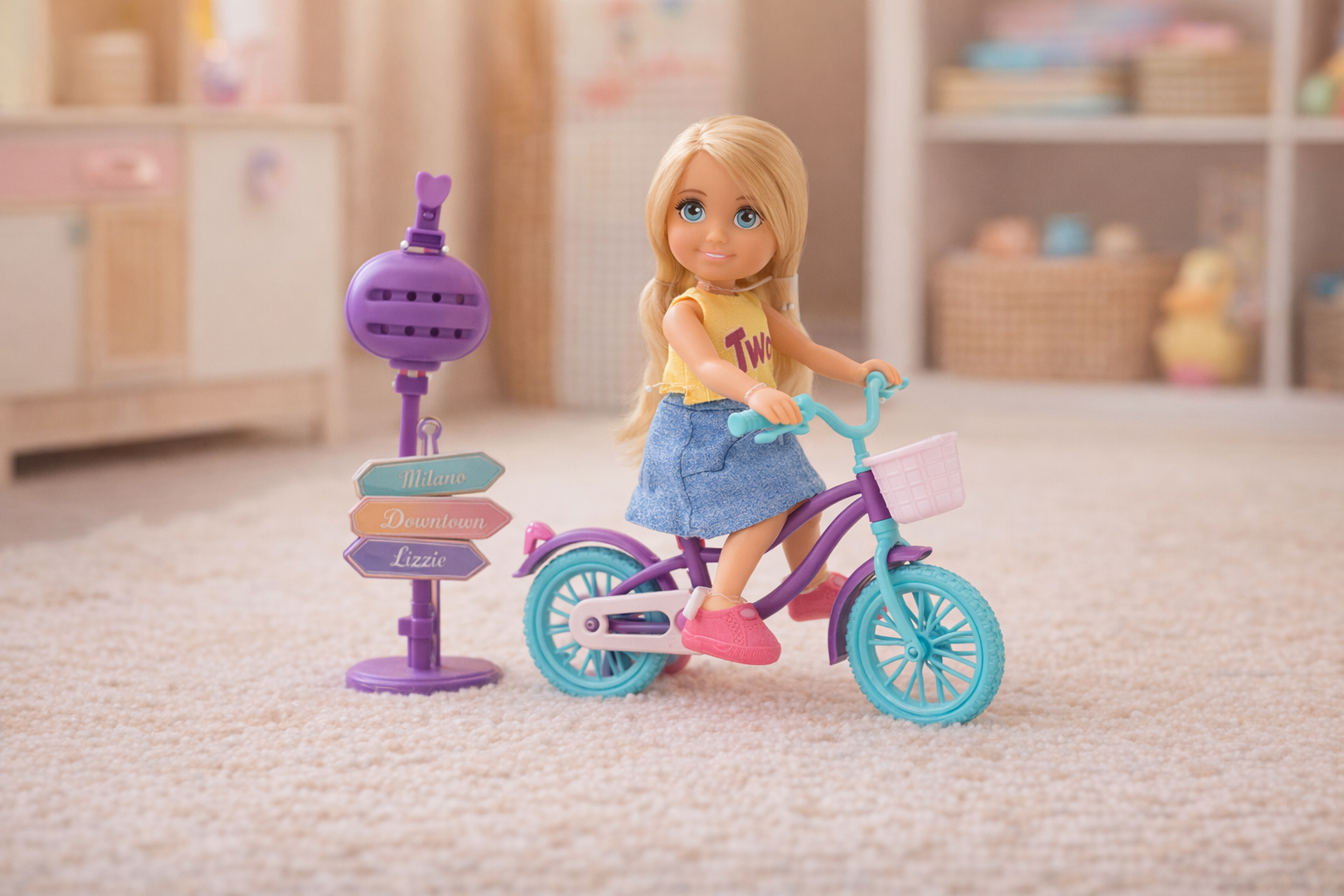 Entdecken Sie die fröhliche Mini-Puppe, die perfekt für Kinder ab 3 Jahren ist. Diese charmante Puppe sitzt auf einem lebhaften lila Fahrrad mit türkisfarbenen Details und einem kleinen rosa Korb, ideal für fantasievolle Abenteuer. Die Puppe trägt ein trendiges Outfit mit einem gelben Shirt und einem blauen Rock. Dieses Set fördert kreatives Spielen und motorische Fähigkeiten, während es sicher und robust bleibt. Der Helm der Puppe sorgt für ein realistisches Rollenspiel-Erlebnis. Perfekt für drinnen und draußen, bietet es stundenlangen Spielspaß und ist ein großartiges Geschenk für kleine Abenteurer.