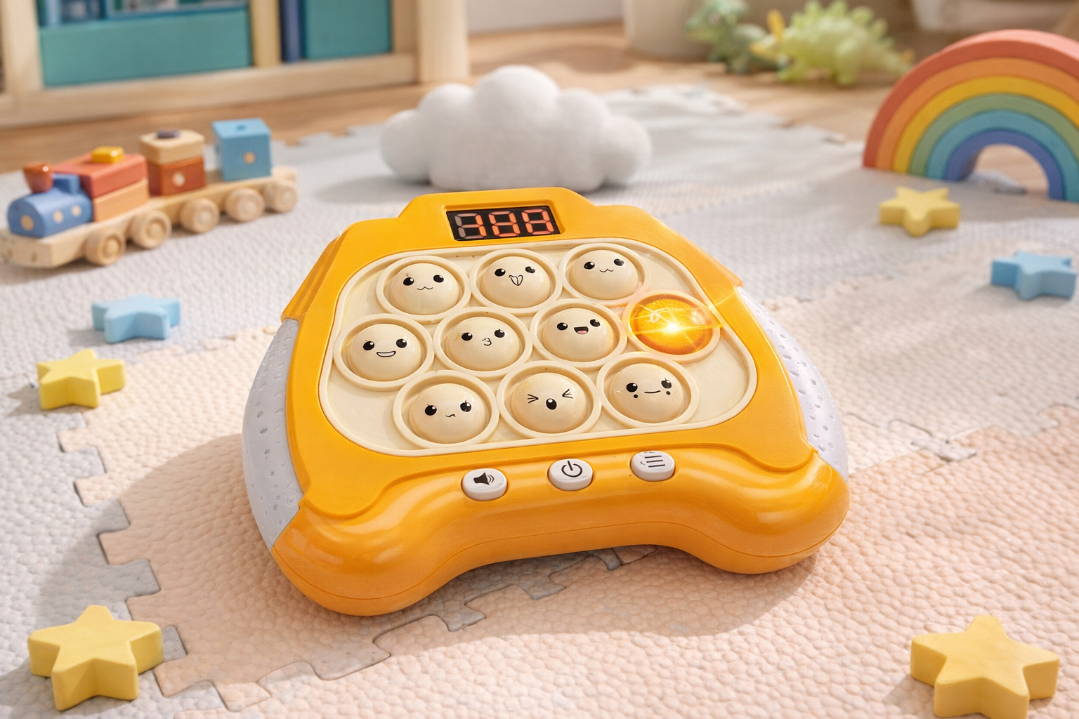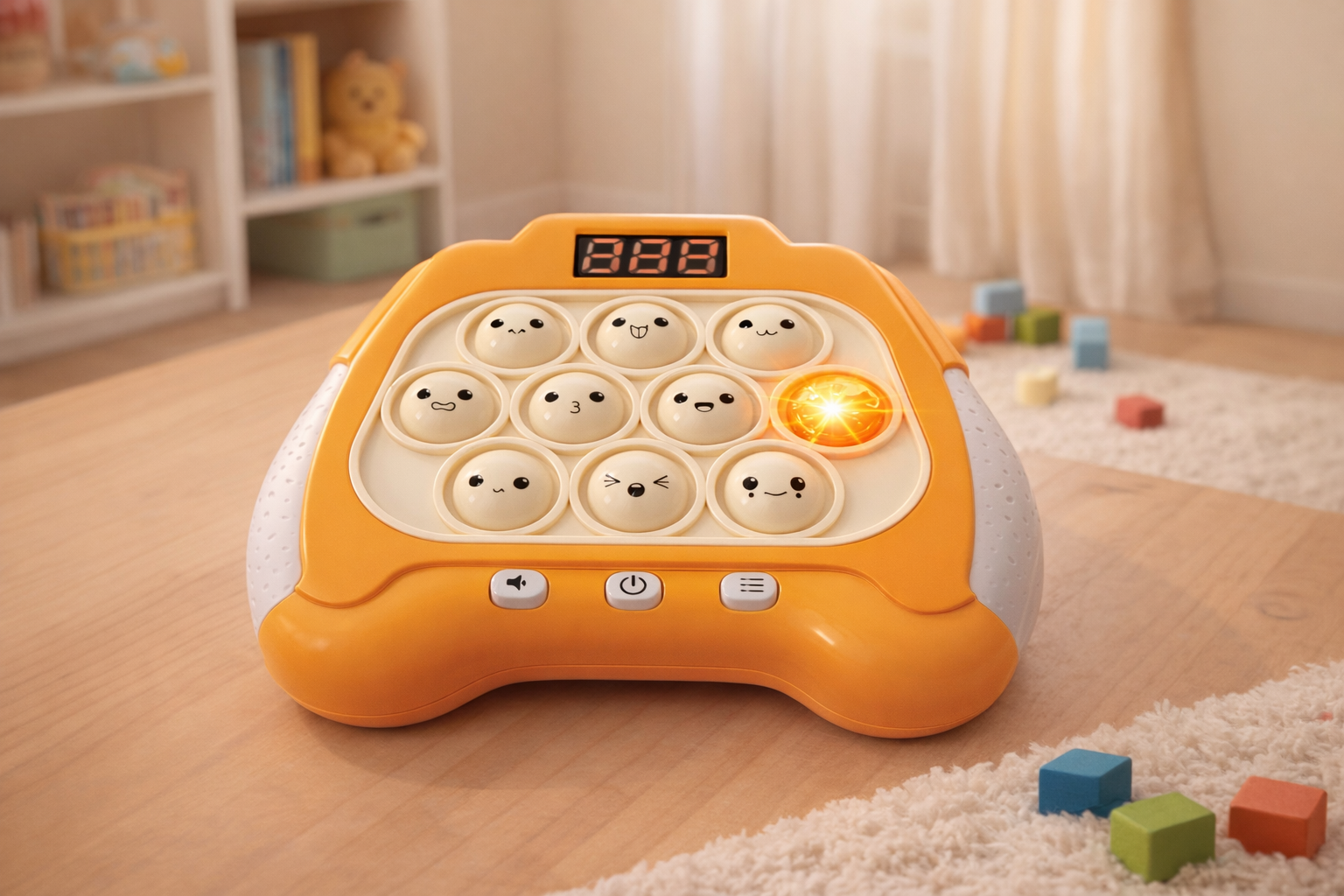 Entdecken Sie die interaktive Lernkonsole, perfekt für Kinder ab 3 Jahren. Dieses leuchtend orangefarbene Gerät bietet sechs spannende Spielmodi, die Kinder dazu ermutigen, ihre Gedächtnisfähigkeiten und Reaktionszeiten zu verbessern. Ein digitales Display zeigt den Spielstatus an, während leuchtende Lichter und lustige Geräusche für anhaltende Begeisterung sorgen. Das kompakte Design eignet sich ideal für Zuhause oder unterwegs. Hergestellt aus robustem, kindersicheren Kunststoff, ist diese Konsole ein ideales Geschenk, das stundenlangen Spielspaß und wichtige Lernvorteile bietet.