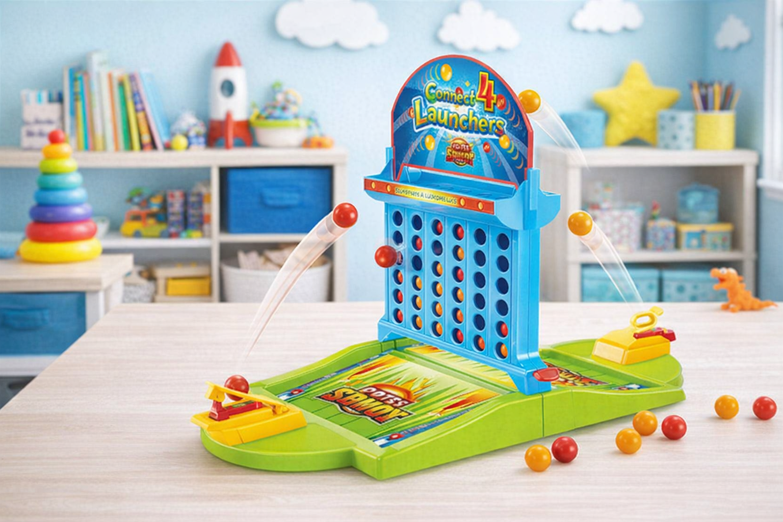 Erleben Sie mit dem interaktiven Connect 4 Abschuss-Spiel einen aufregenden Spielspaß. Das bunte Design kombiniert leuchtende Farben wie Blau, Gelb und Rot und besteht aus robustem Kunststoff. Dieses Spielzeug fördert die Hand-Augen-Koordination und strategisches Denken, indem Spieler ihre Kugeln mithilfe von Launchern zielen und in das Raster schießen, um vier in einer Reihe zu verbinden. Geeignet für Kinder ab 6 Jahren und ideal für drinnen. Das perfekte Geschenk für kleine Strategen, das sowohl Spaß als auch Lernwert bietet.