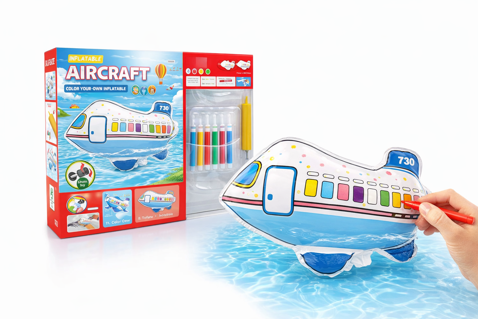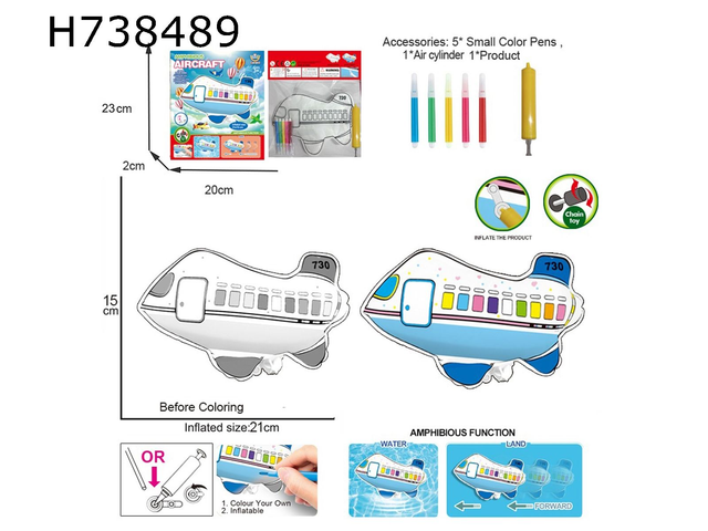 Entdecken Sie das kreative Potenzial Ihres Kindes mit diesem einzigartigen DIY Amphibienflugzeug zum Ausmalen. Das aufblasbare Spielzeug kommt mit fünf farbigen Stiften, die es Kindern ermöglichen, ihr eigenes Design zu gestalten. Der leichte Kunststoff ist robust und sicher für drinnen und draußen. Mit seiner amphibischen Funktion kann das Flugzeug sowohl auf Wasser als auch auf Land verwendet werden, was den Spielspaß steigert. Ideal für Kinder ab 3 Jahren, fördert es die Feinmotorik und die Kreativität. Ein perfektes Geschenk für kleine Entdecker und kreative Köpfe.