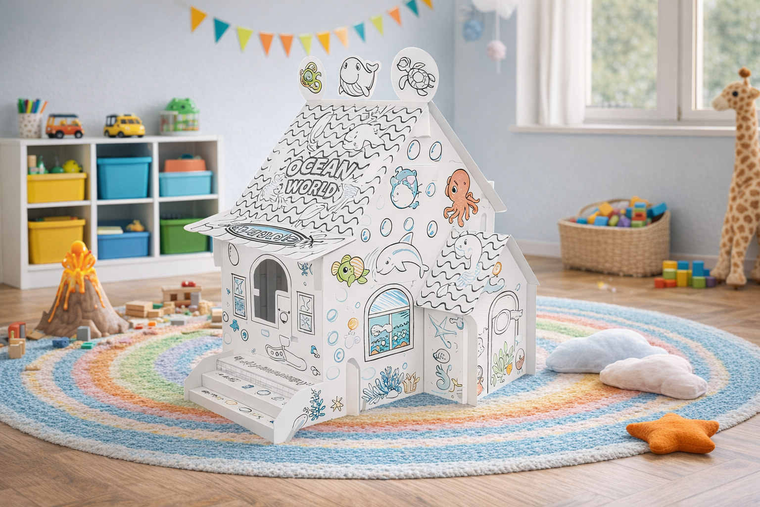 Entfessle die Kreativität deines Kindes mit diesem bezaubernden DIY Graffiti-Ozeanhaus. Das robuste Kartonhaus bietet eine große Leinwand für kleine Künstler, um ihre Fantasie mit Farben zum Leben zu erwecken. Mit bunten Motiven und einem ansprechenden Design lädt das Haus Kinder ein, ihre eigenen Geschichten zu erschaffen. Fördert die Feinmotorik und künstlerische Fähigkeiten, während es stundenlangen Spielspaß bietet. Ideal für Kinder ab 3 Jahren, ist es eine hervorragende Wahl für spielerische Lernumgebungen zu Hause oder im Klassenzimmer. Der Aufbau ist kinderleicht, und die glatten Kanten sorgen für eine sichere Spielzeit. Ein perfektes Geschenk für kleine Künstler!