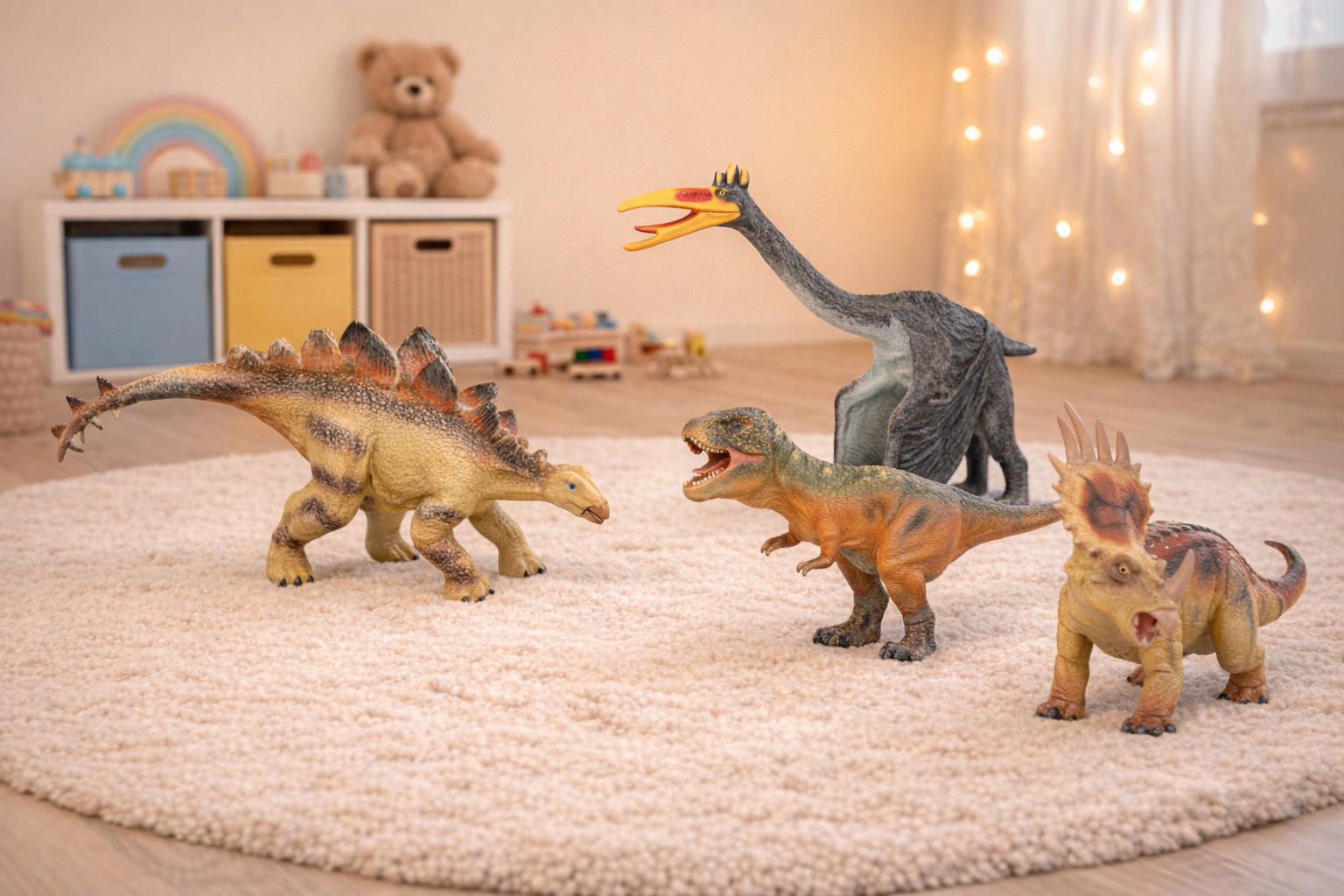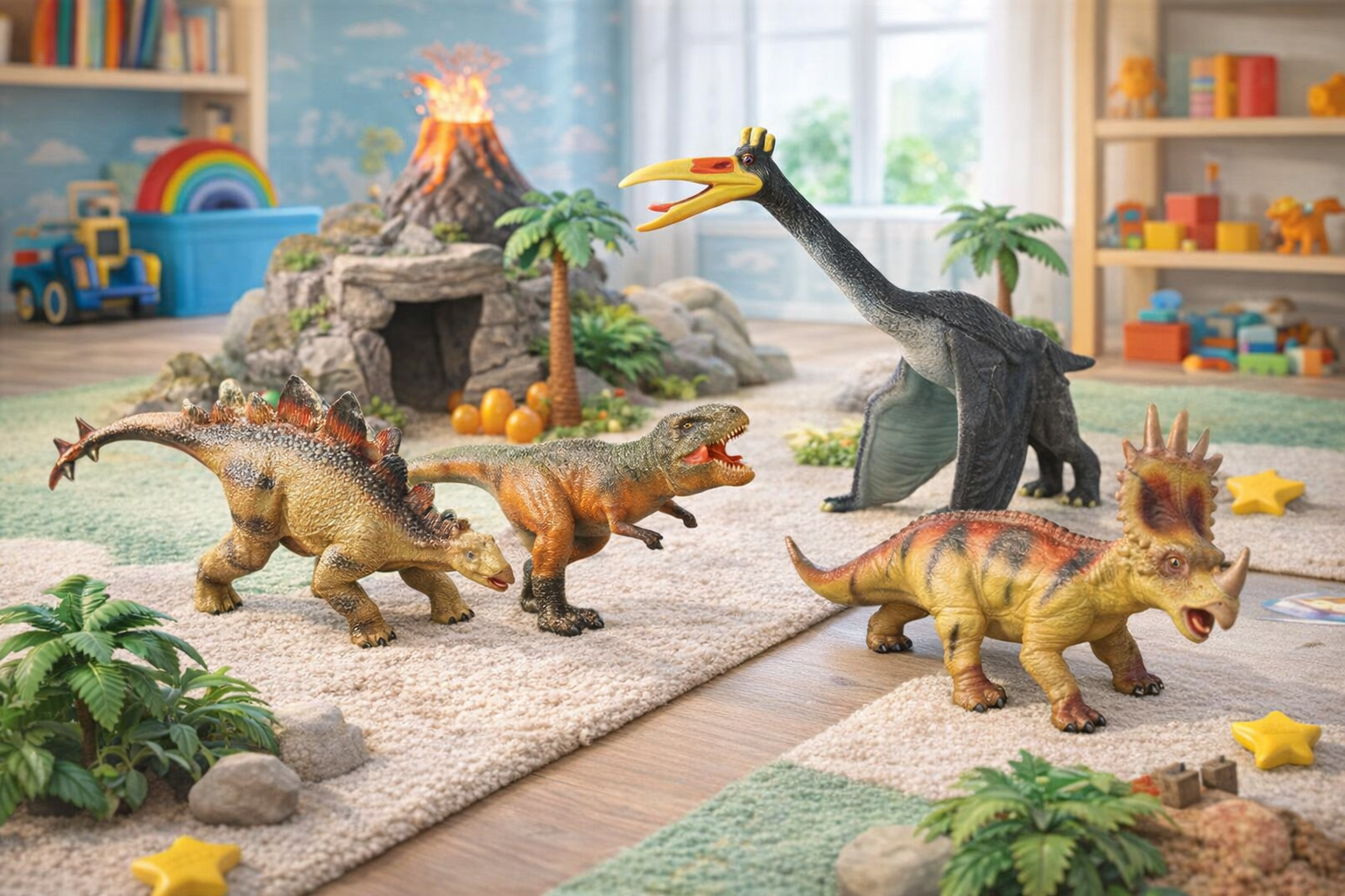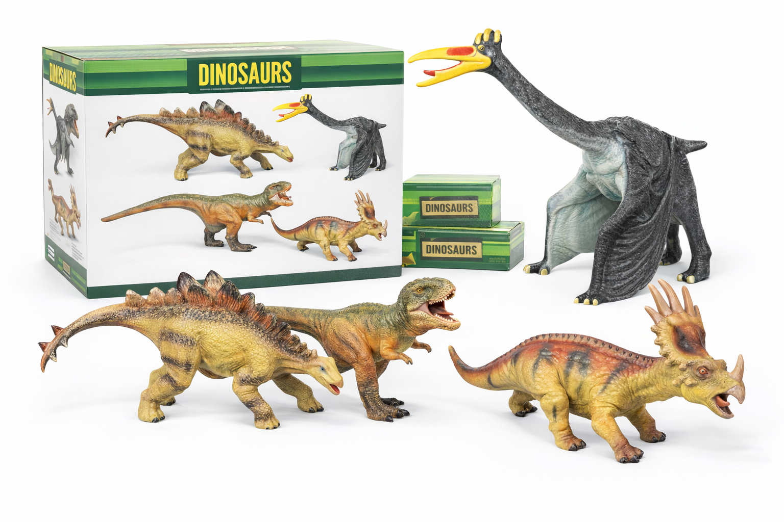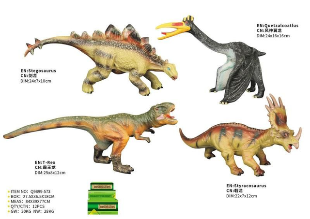 Tauchen Sie ein in die Welt der prähistorischen Abenteuer mit diesen lebensechten Vinyl-Dinosaurierfiguren. Das Set umfasst detailreiche Nachbildungen von Stegosaurus, T-Rex, Quetzalcoatlus und Styracosaurus, die mit leuchtenden Farben und realistischer Textur begeistern. Hergestellt aus robustem, ungiftigem Vinyl, sind diese Figuren sicher und langlebig, ideal für fantasievolles Spielen drinnen und draußen. Fördern Sie die Kreativität und das Wissen Ihres Kindes über die Dinosaurierzeit. Perfekt als Geschenk für kleine Dino-Fans ab 3 Jahren und ein Muss für jeden Sammler!