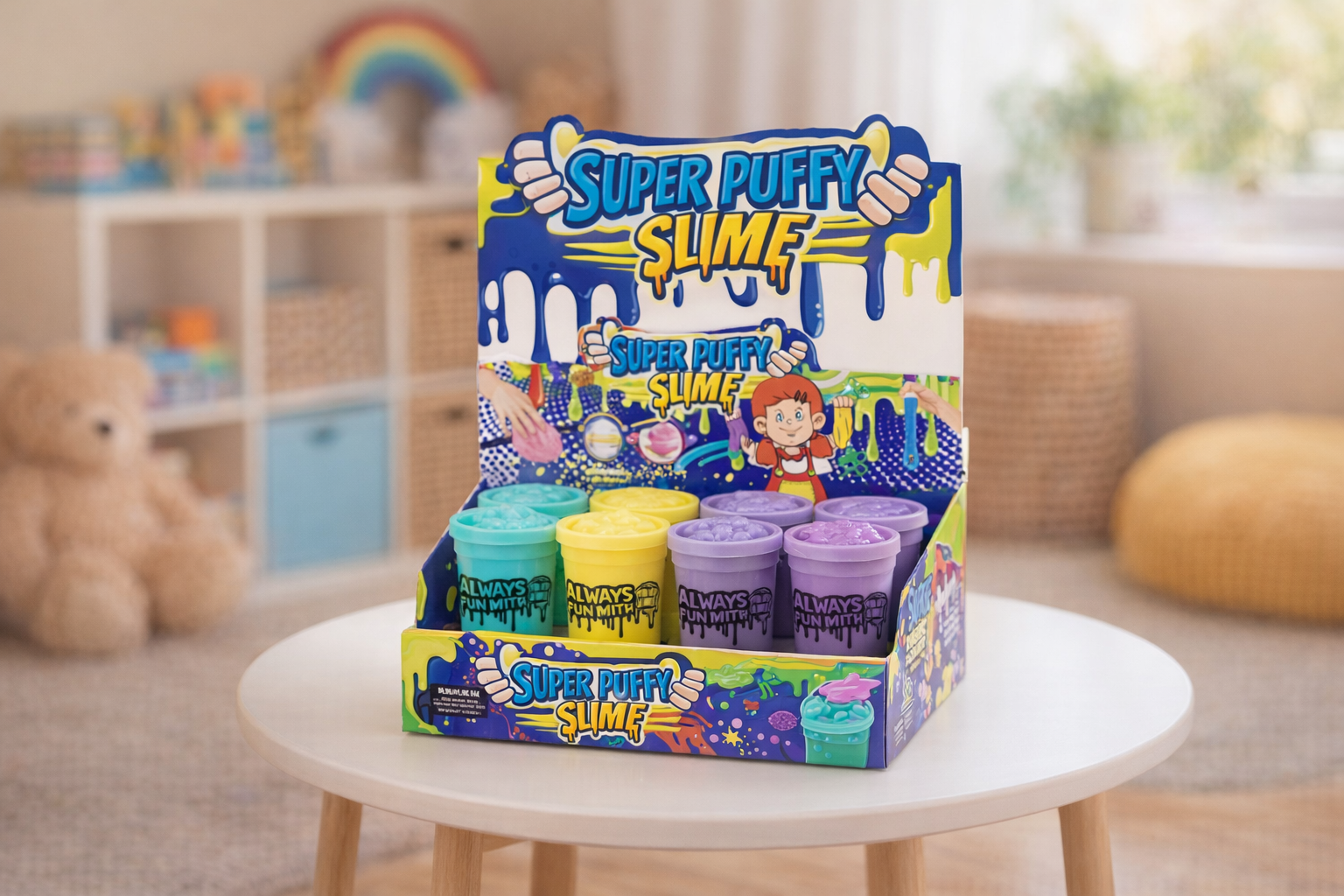 Erleben Sie grenzenlosen Spaß mit dem leuchtenden Super Puffy Slime! In lebendigen Farben wie Pink, Gelb und Lila bietet dieser Slime ein einzigartiges, perlmuttschimmerndes Design, das Kinder begeistert. Die weiche, dehnbare Textur fördert taktile Erkundung und Kreativität und eignet sich perfekt für Kinder ab 5 Jahren. Der Slime ist in praktischen, luftdichten 12 Bechern verpackt, um Austrocknen zu verhindern, und bietet eine saubere, wiederverwendbare Spieloption für unterwegs oder zu Hause. Ideal als Geschenk, fördert es die Feinmotorik und sorgt für endlose Unterhaltung.