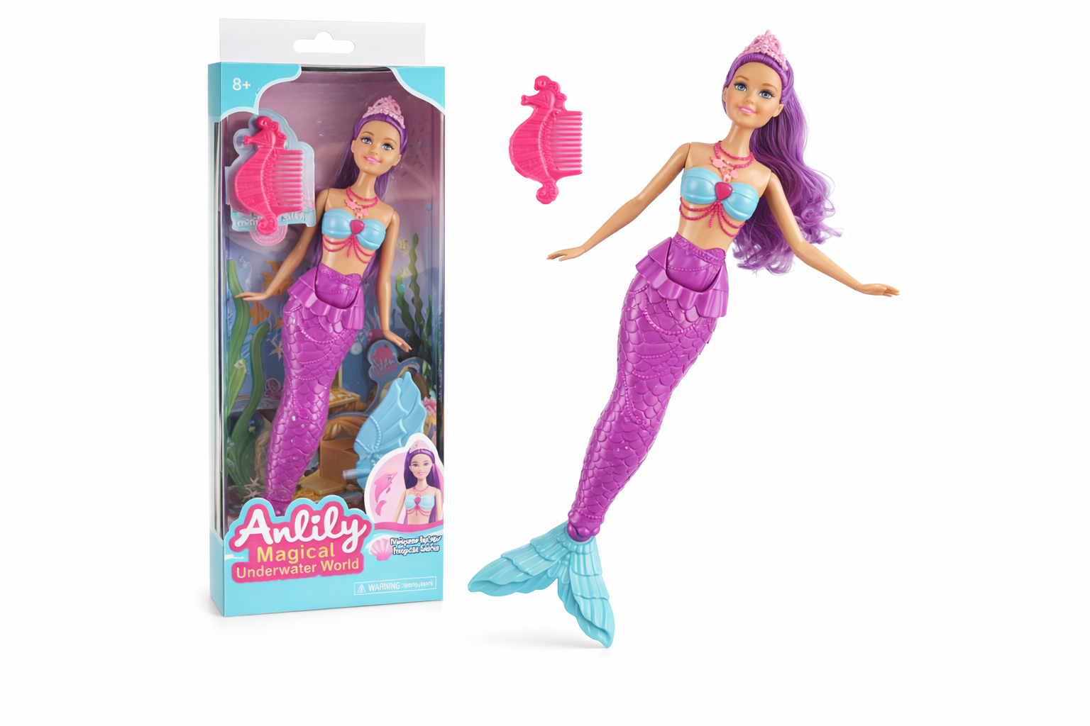 Tauchen Sie ein in die zauberhafte Unterwasserwelt mit dieser magischen Meerjungfrauen-Puppe! Die Puppe besitzt ein schillerndes lila Fischschwanz-Design und trägt... Lesen Sie mehr