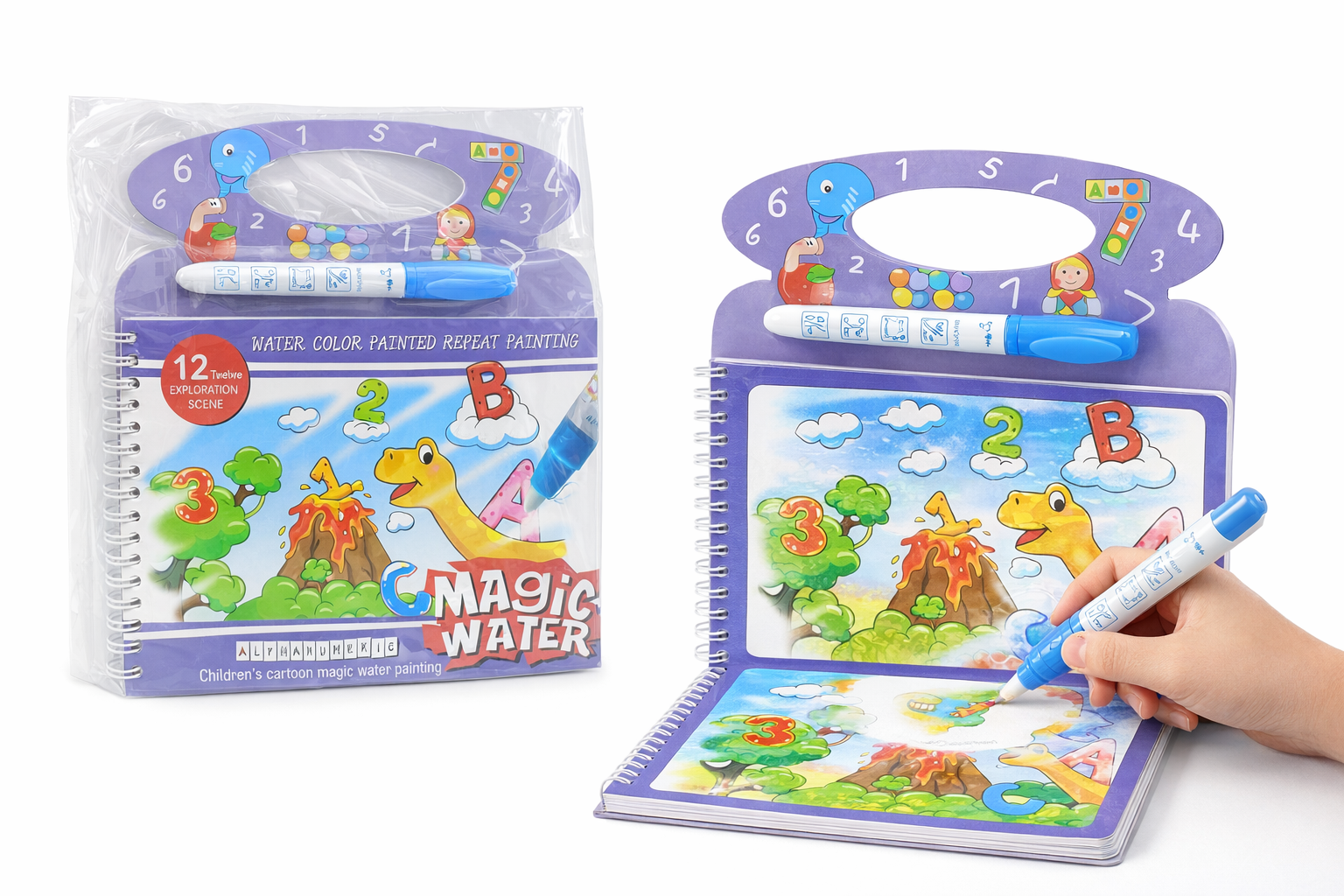 Entdecken Sie das faszinierende Magische Wasser-Malbuch, perfekt für kreative Kinderabenteuer. Mit einem speziellen Wasserstift erwecken Kinder bunte Szenen zum Leben, die nach dem Trocknen wieder verschwinden und endlosen Malspaß ermöglichen. Das Design zeigt lustige, cartoonartige Dschungel- und Dinosauriermotive in lebendigen Farben. Die robuste Spiralbindung sorgt für Langlebigkeit und einfache Handhabung, während die abgerundeten Kanten und ungiftigen Materialien für Sicherheit sorgen. Ideal für Kleinkinder und Vorschulkinder fördert es Feinmotorik und Farberkennung. Perfekt für Reisen oder als Geschenk, bietet es lehrreiche Unterhaltung überall.