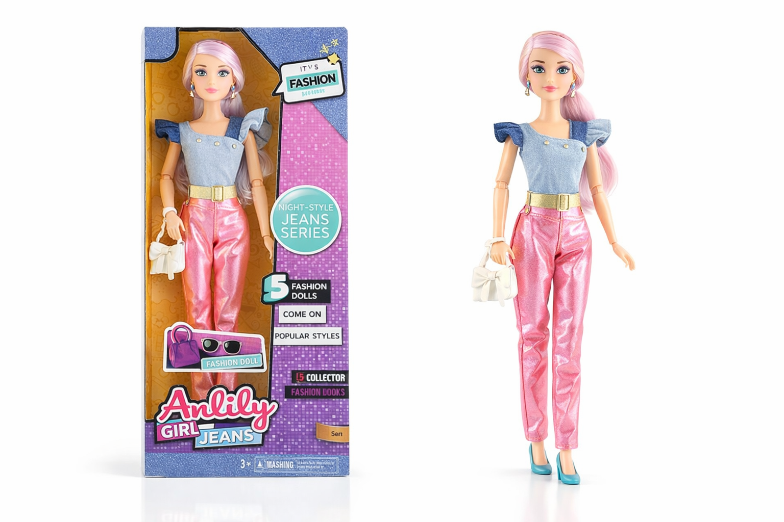 Entdecken Sie die stilvolle Modepuppe, die durch ihre trendige Jeans und farbenfrohe Kleidung besticht. Diese 11,5-Zoll-Puppe trägt ein modisches Outfit mit einer pinken Hose und einem blauen Oberteil, begleitet von passenden Accessoires. Hergestellt aus robustem Kunststoff, bietet sie sowohl Haltbarkeit als auch kreative Spielmöglichkeiten. Ihr beweglicher Körper ermöglicht es Kindern, verschiedene Posen zu kreieren und ihre Fantasie zu entfalten. Geeignet für Kinder ab 5 Jahren, fördert diese Modepuppe soziale Fähigkeiten und kreatives Denken. Perfekt für drinnen und ideal als Geschenk für junge Modebegeisterte.