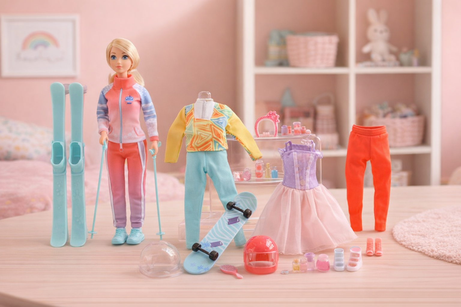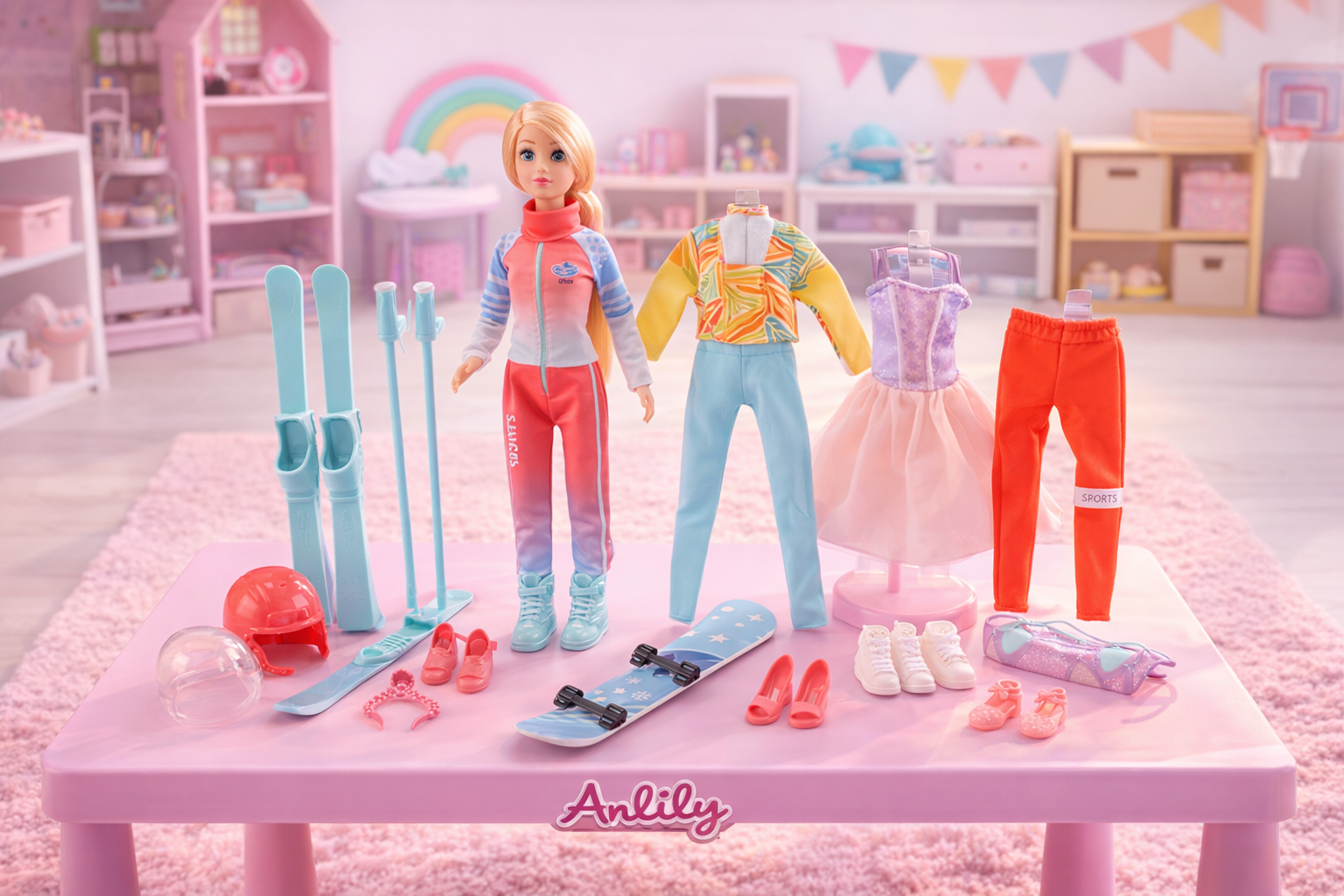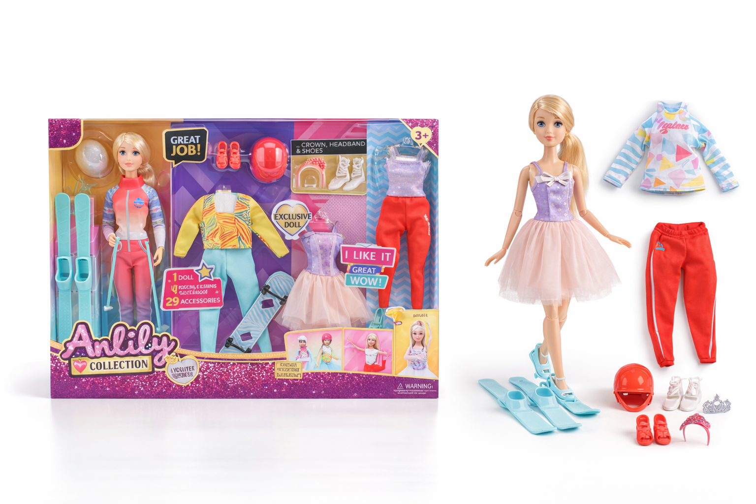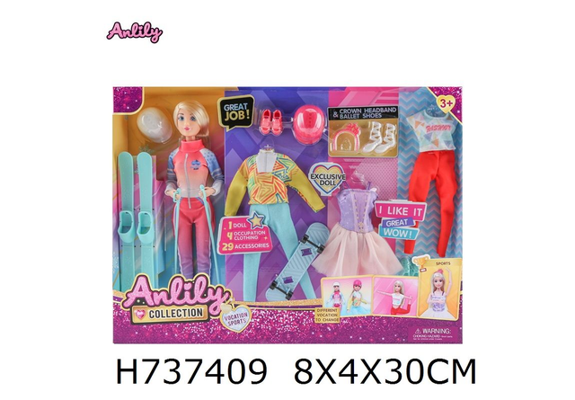 Moderne Anziehpuppe mit 29 Zubehörteilen
