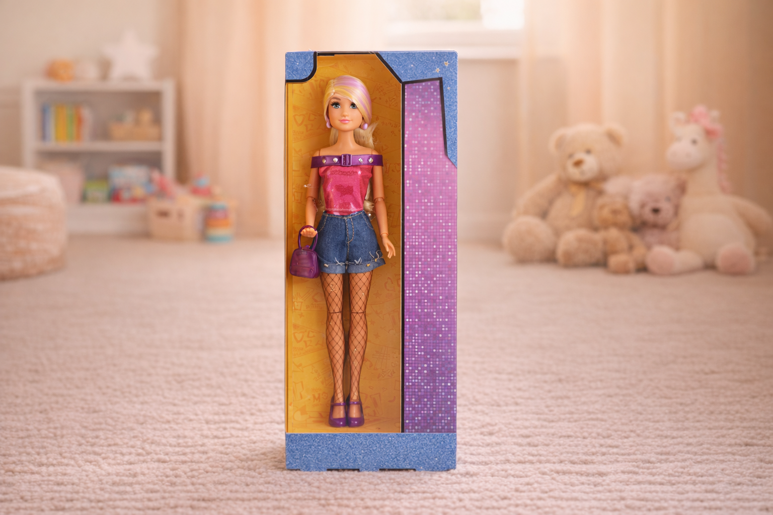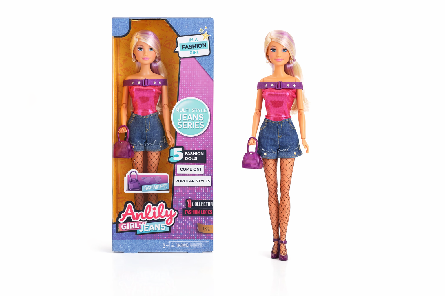 Modische Ankleidepuppe mit Jeans und Accessoires
