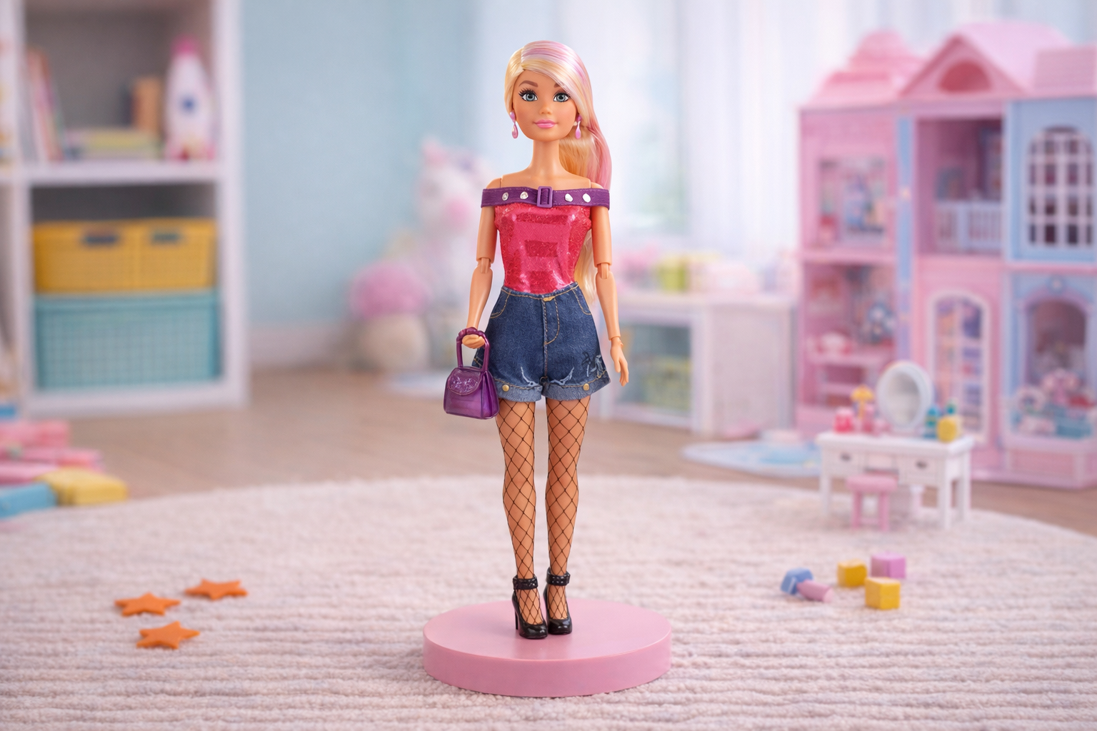 Diese stilvolle Ankleidepuppe verkörpert modernen Modecharme und kommt in einem farbenfrohen Outfit mit einer pinken Bluse und trendigen Jeansshorts. Die... Lesen Sie mehr