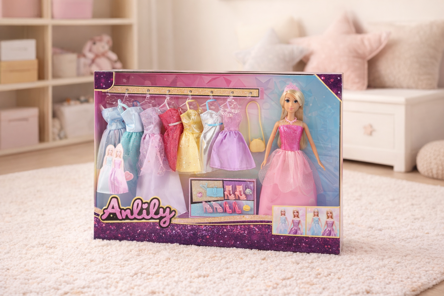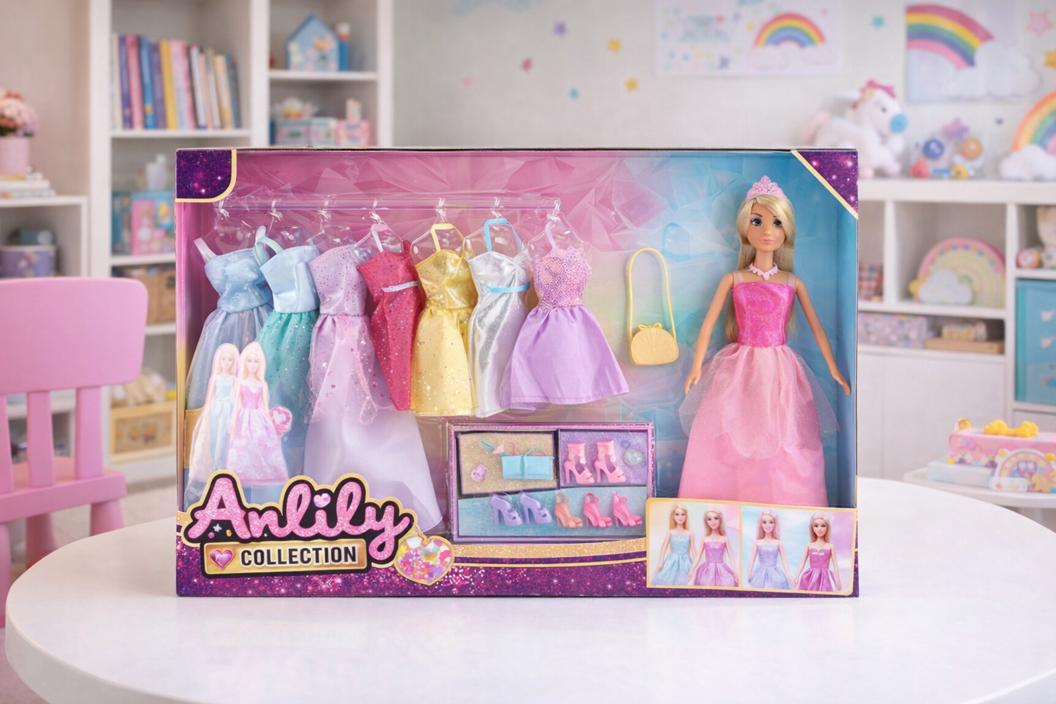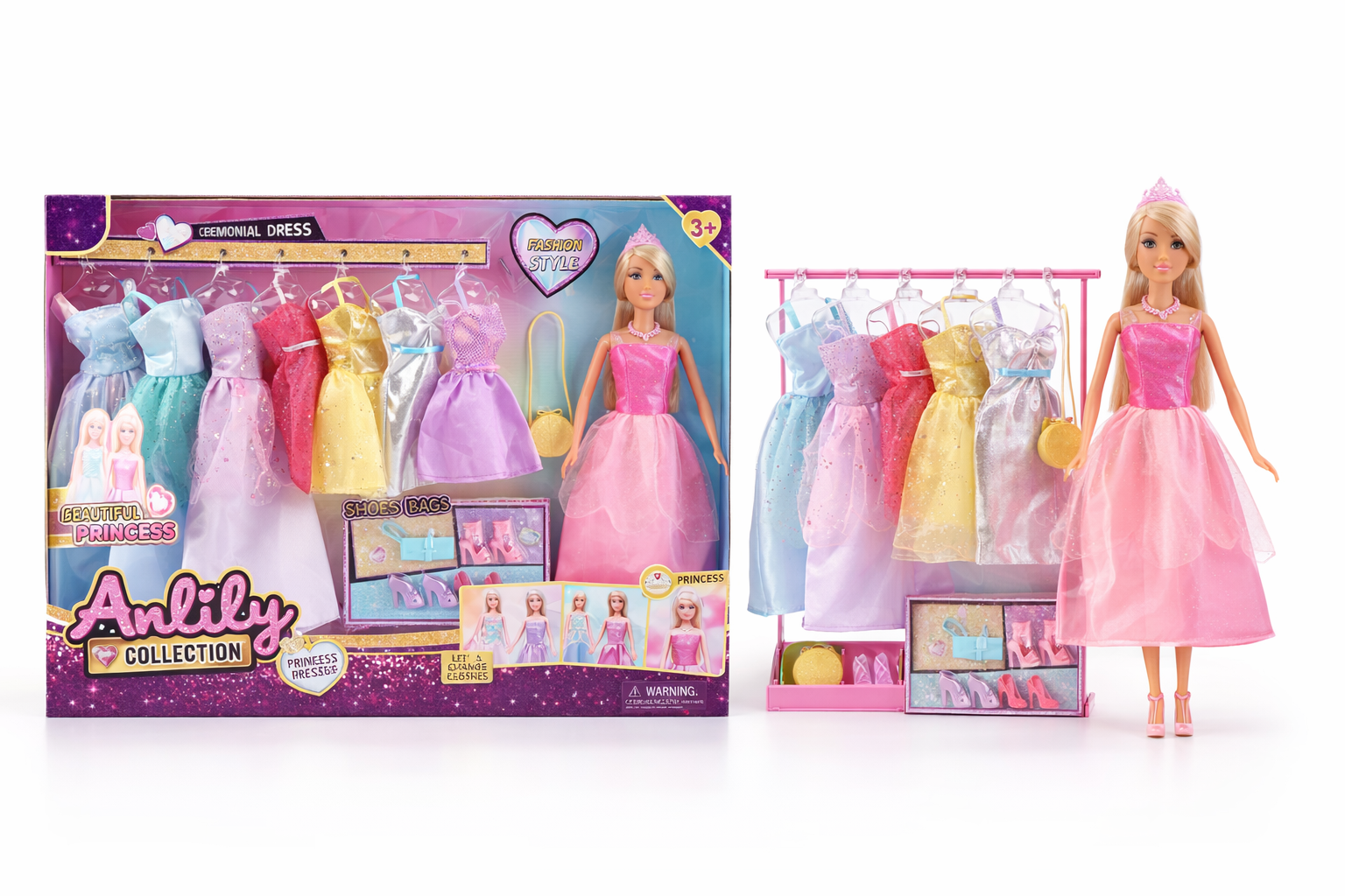 Entdecken Sie die bezaubernde Welt der Anlily Prinzessinnen-Puppe, die mit einer beeindruckenden Auswahl an eleganten Kleidern und Accessoires ausgestattet ist.... Lesen Sie mehr