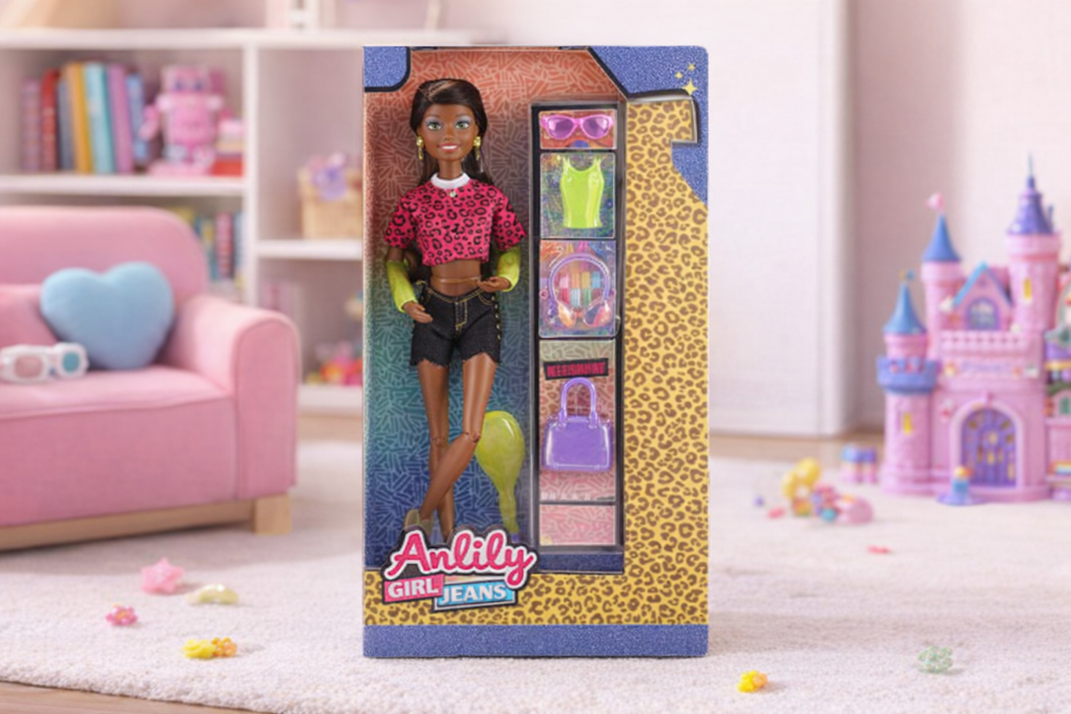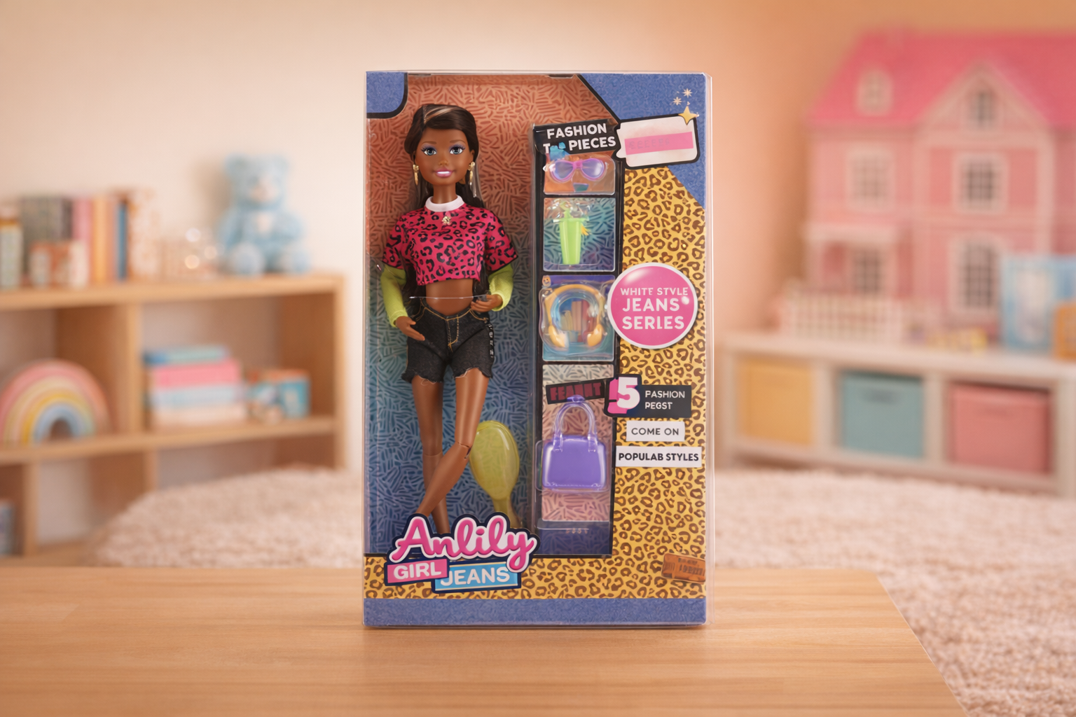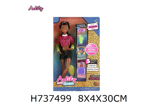 Diese farbenfrohe, 11,5 Zoll große Anziehpuppe begeistert mit ihrem modernen Jeans-Look und zahlreichen Accessoires. Die Puppe trägt ein stilvolles Outfit mit einem pinkfarbenen Leopardenmuster und kombiniert es mit einer schicken Jeanshose. Durch die austauschbaren Kleidungsstücke und Accessoires können Kinder ihrer Kreativität freien Lauf lassen und immer wieder neue Looks kreieren. Das Spielzeug ist aus robustem, ungiftigem Kunststoff gefertigt und eignet sich für Kinder ab 3 Jahren. Perfekt für stundenlangen Spielspaß im Kinderzimmer oder unterwegs, und ein großartiges Geschenk für kleine Modefans.