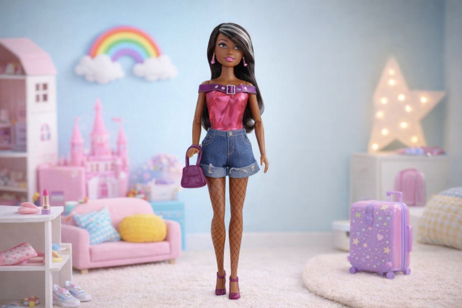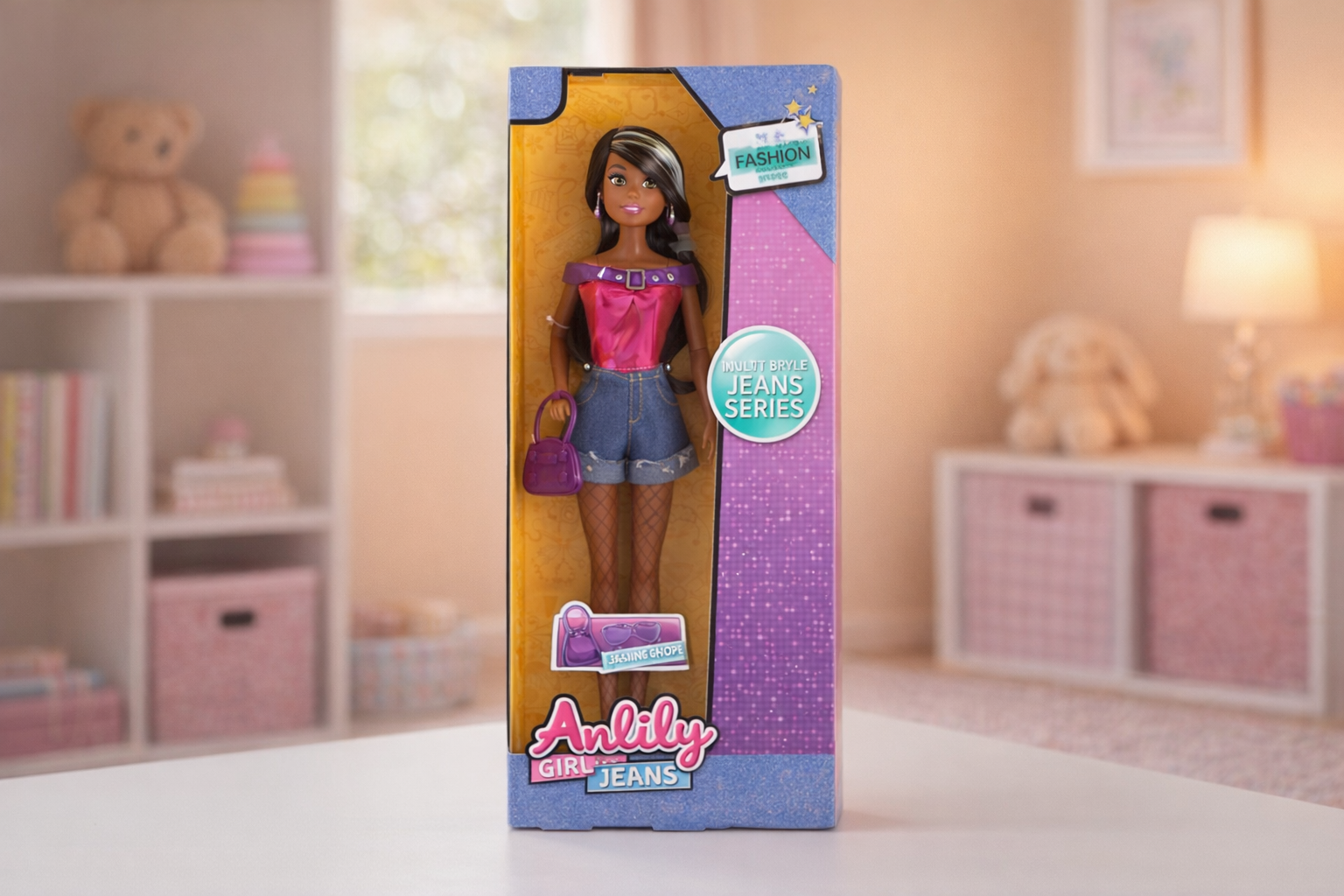 Diese stilvolle Anziehpuppe verkörpert den urbanen Chic mit ihrem modischen Jeans-Outfit und der leuchtend pinken Bluse. Perfekt für fantasievolles Spiel,... Lesen Sie mehr