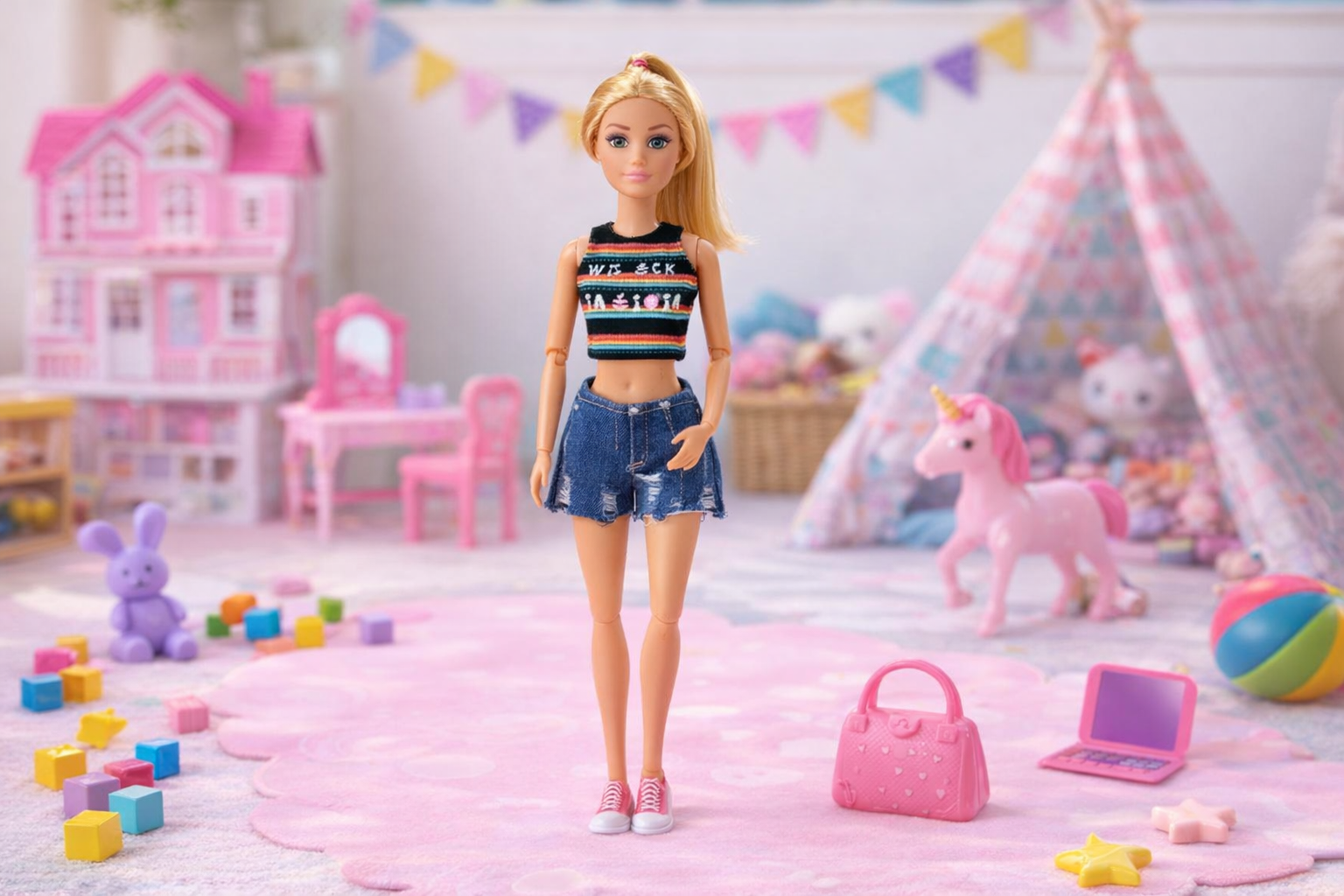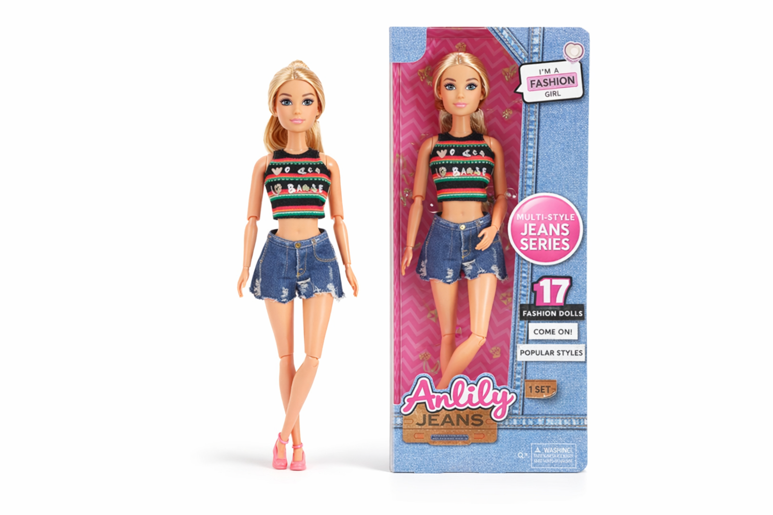 Modische Fashion-Puppe mit Jeans-Outfit