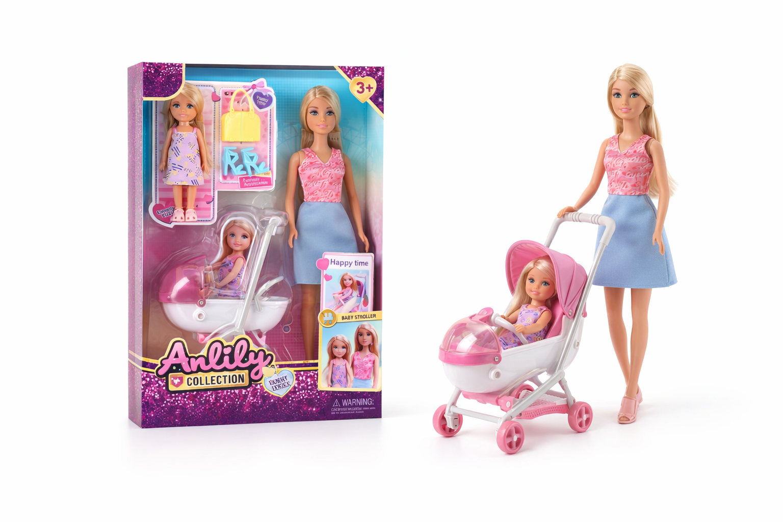 Diese elegante Anziehpuppe aus der Anlily Collection begeistert mit ihrem detailreichen Design. Die Puppe trägt modische Kleidung in sanften Pastellfarben und wird mit einem stilvollen Kinderwagen sowie weiteren Accessoires wie Schuhen und Handtaschen geliefert. Hergestellt aus robustem, hochwertigem Kunststoff, ist dieses Set perfekt für fantasievolles Spielen geeignet. Kinder ab 3 Jahren können ihre Kreativität entfalten und Rollenspiele genießen. Die Puppe fördert soziale Fähigkeiten und kreative Ausdrucksmöglichkeiten, während das Zubehör für abwechslungsreichen Spielspaß sorgt. Ideal für drinnen und ein wunderbares Geschenk für kleine Stylisten.
