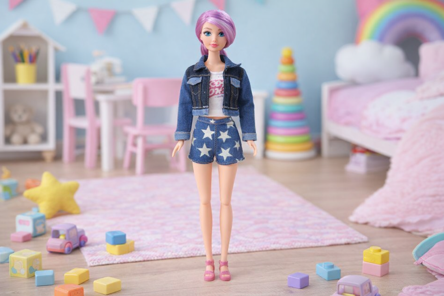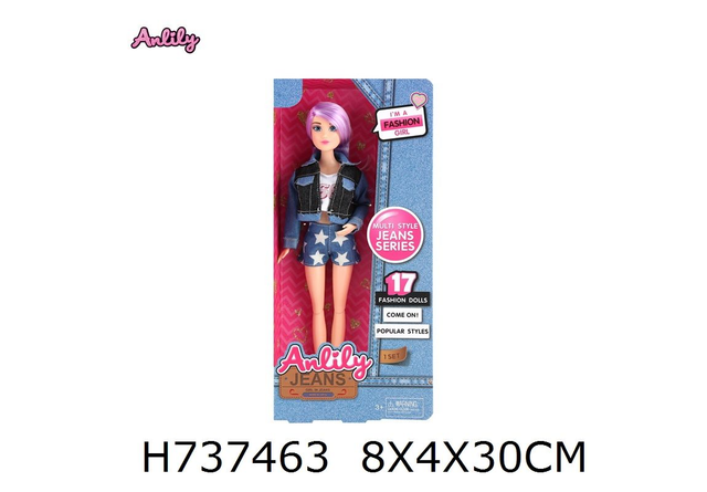 Diese 11.5 Zoll große Modepuppe beeindruckt mit ihrem trendigen Look. Mit einem auffälligen Jeans-Outfit und pinkfarbenem Haar bringt sie Glamour... Lesen Sie mehr