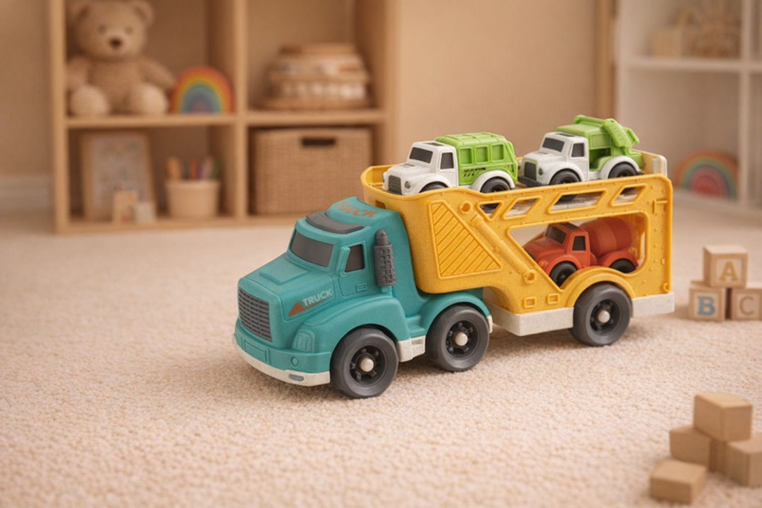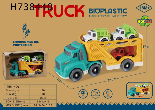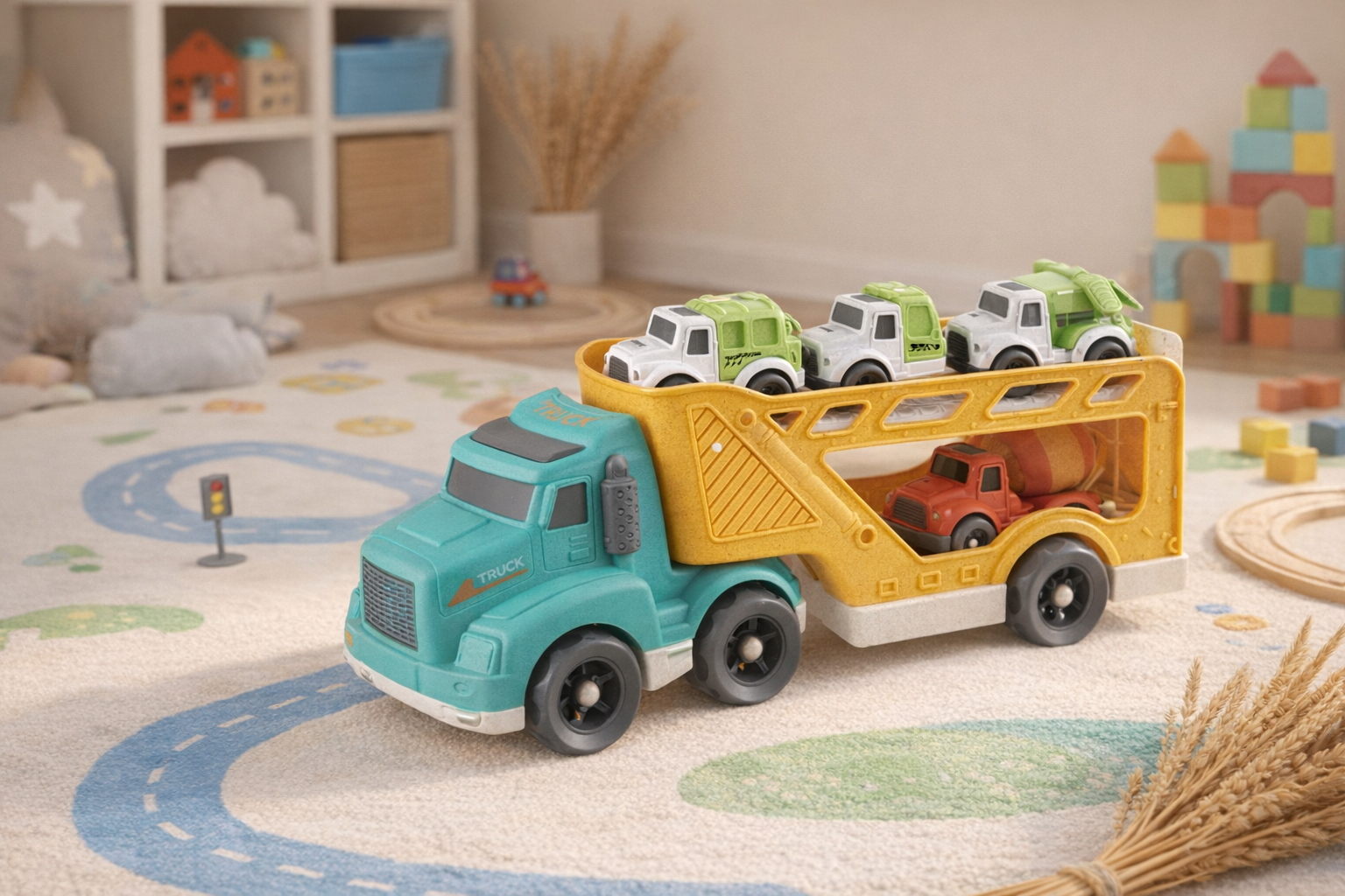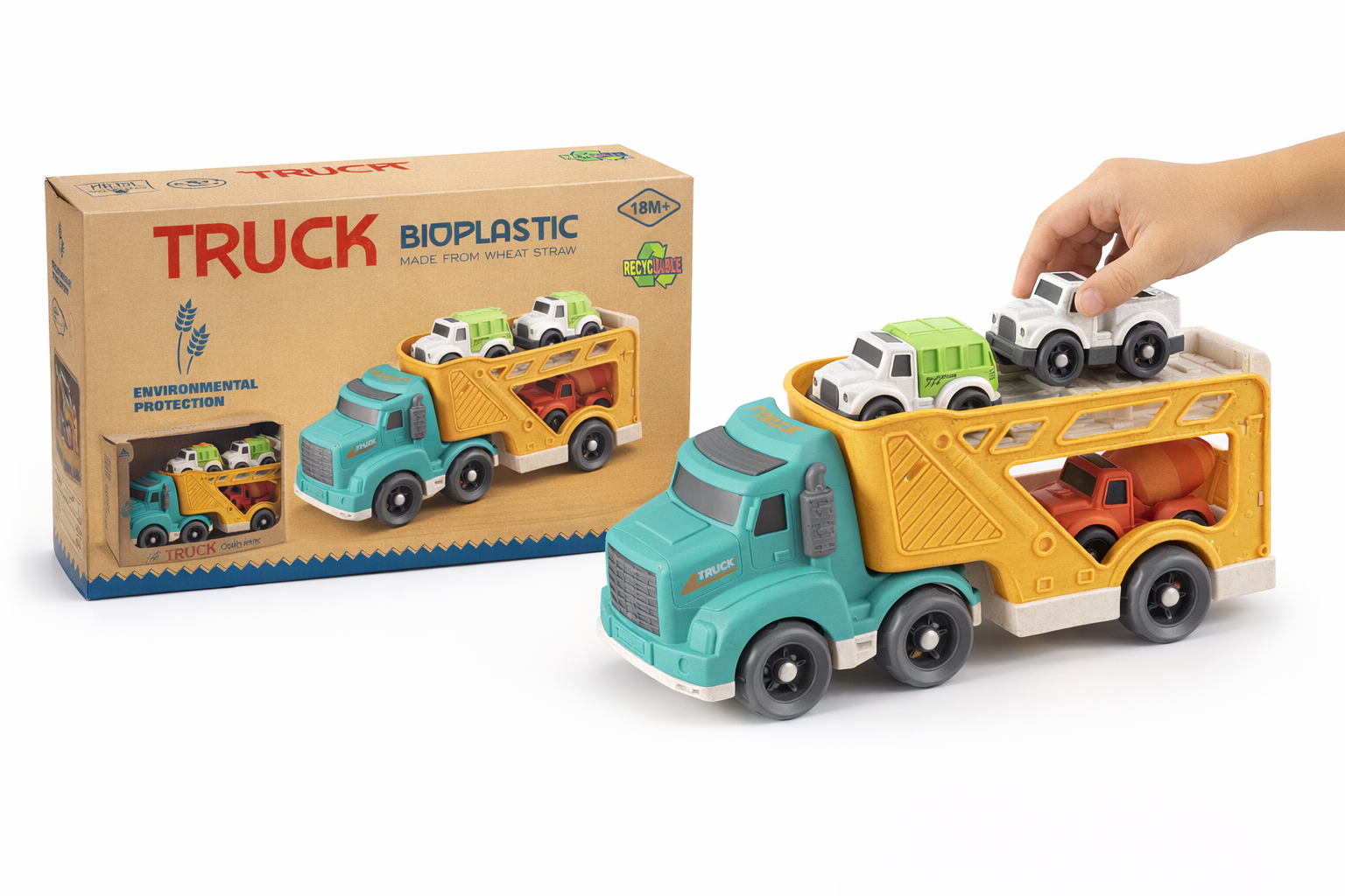 Umweltfreundliches Schiebe-Truck-Set aus Weizenstroh