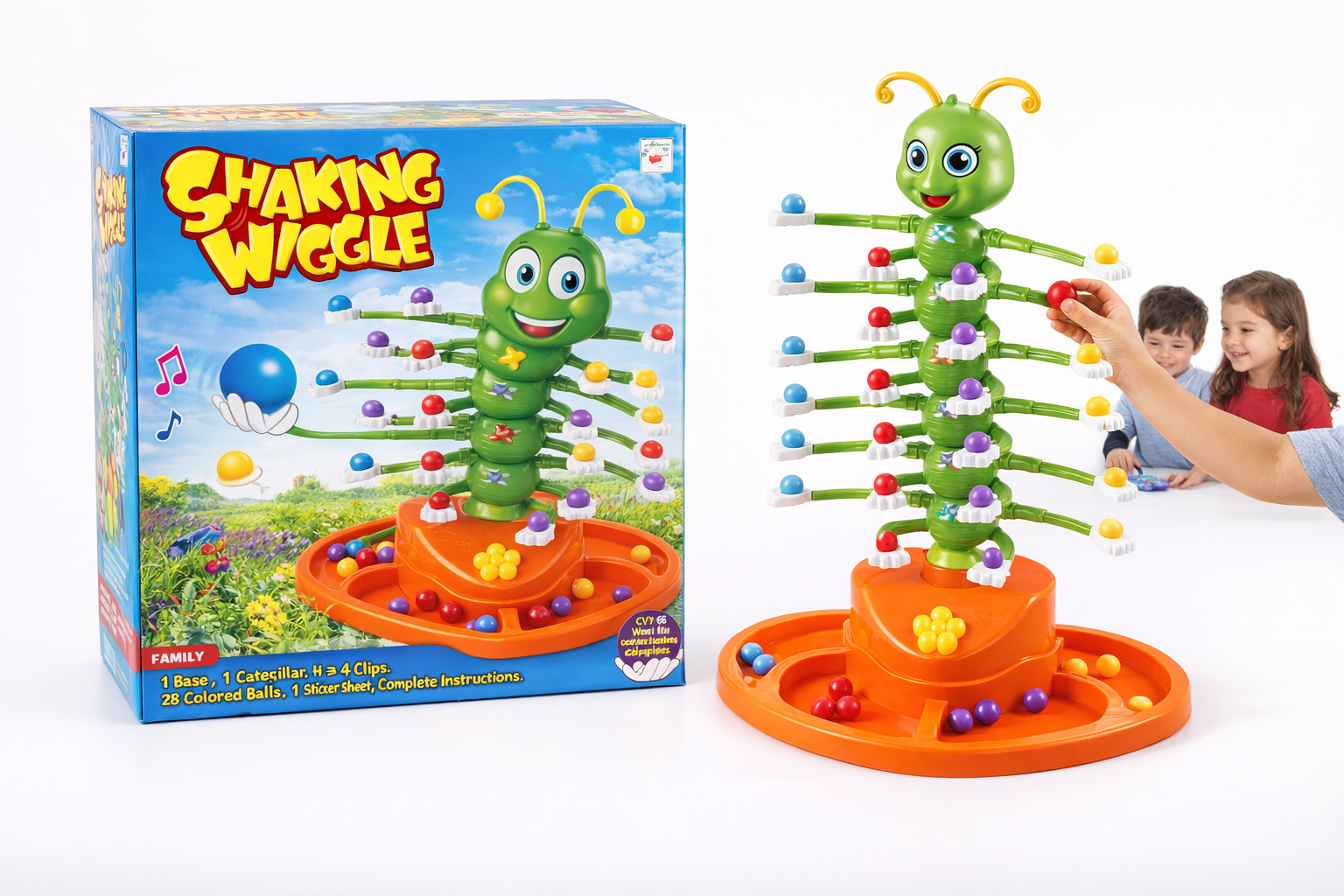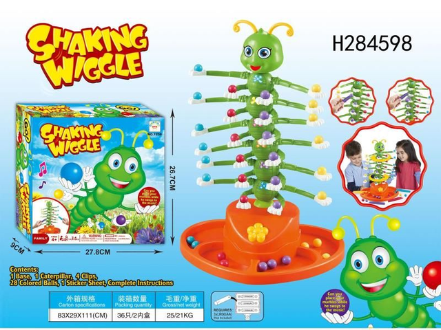 Entdecken Sie das spannende 'Shaking Wiggle' Spielzeug, ein elektrisches Stapelspiel mit einem fröhlichen grünen Wurm. Dieses Spielzeug bringt Kinderaugen zum Leuchten, wenn der Wurm wackelt und die bunten Kugeln auf den Armen gestapelt werden müssen. Der Wurm und die Basis sind aus robustem, kinderfreundlichem Kunststoff gefertigt, ideal für kleine Hände. Mit 28 bunten Kugeln bietet dieses Spiel stundenlangen Spielspaß und fördert die Feinmotorik sowie die Hand-Augen-Koordination der Kinder. Perfekt für Kinder ab 3 Jahren, sorgt es für aufregende Herausforderungen und fördert gleichzeitig die Kreativität. Ideal für drinnen und ein großartiges Geschenk für neugierige kleine Entdecker.